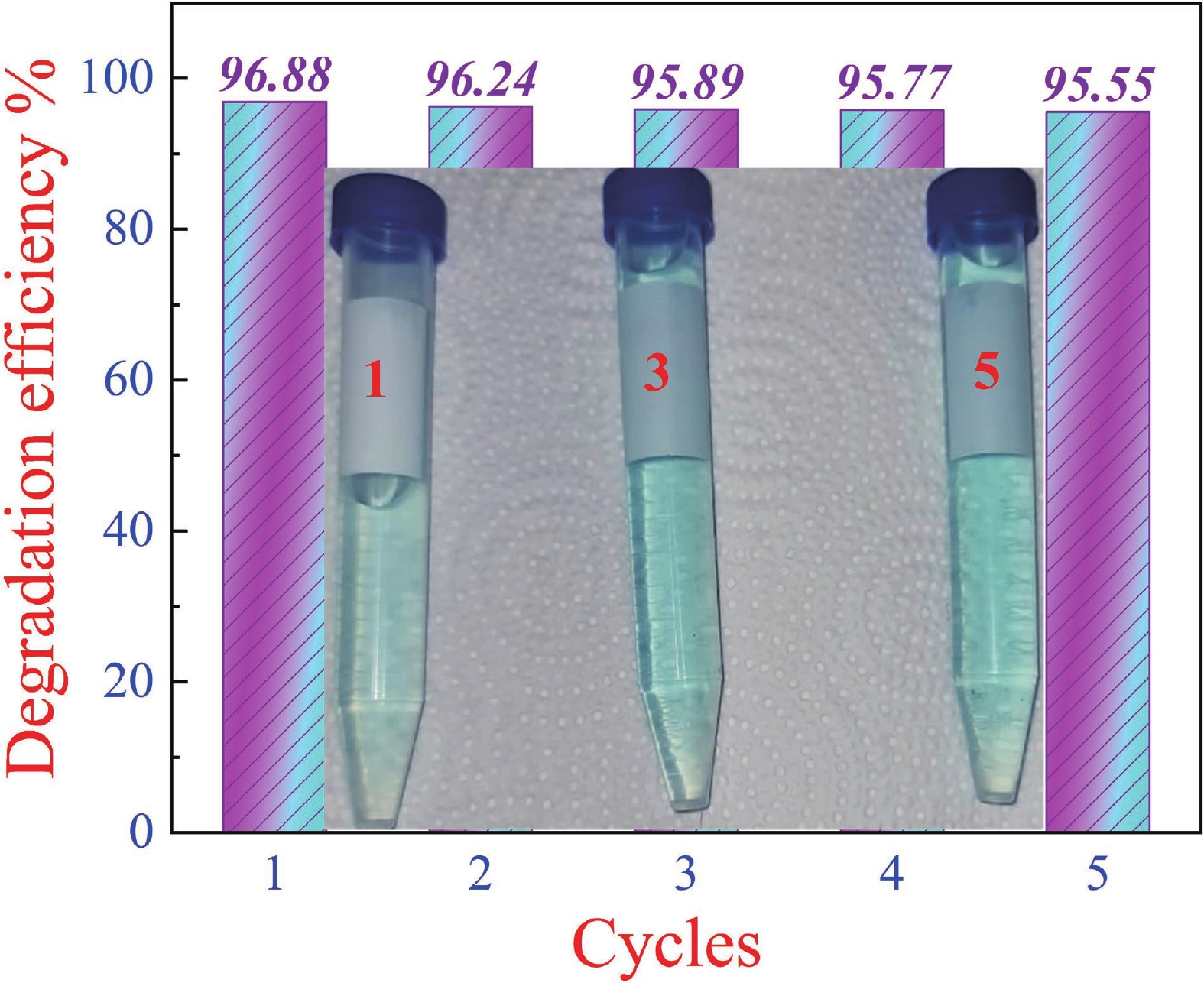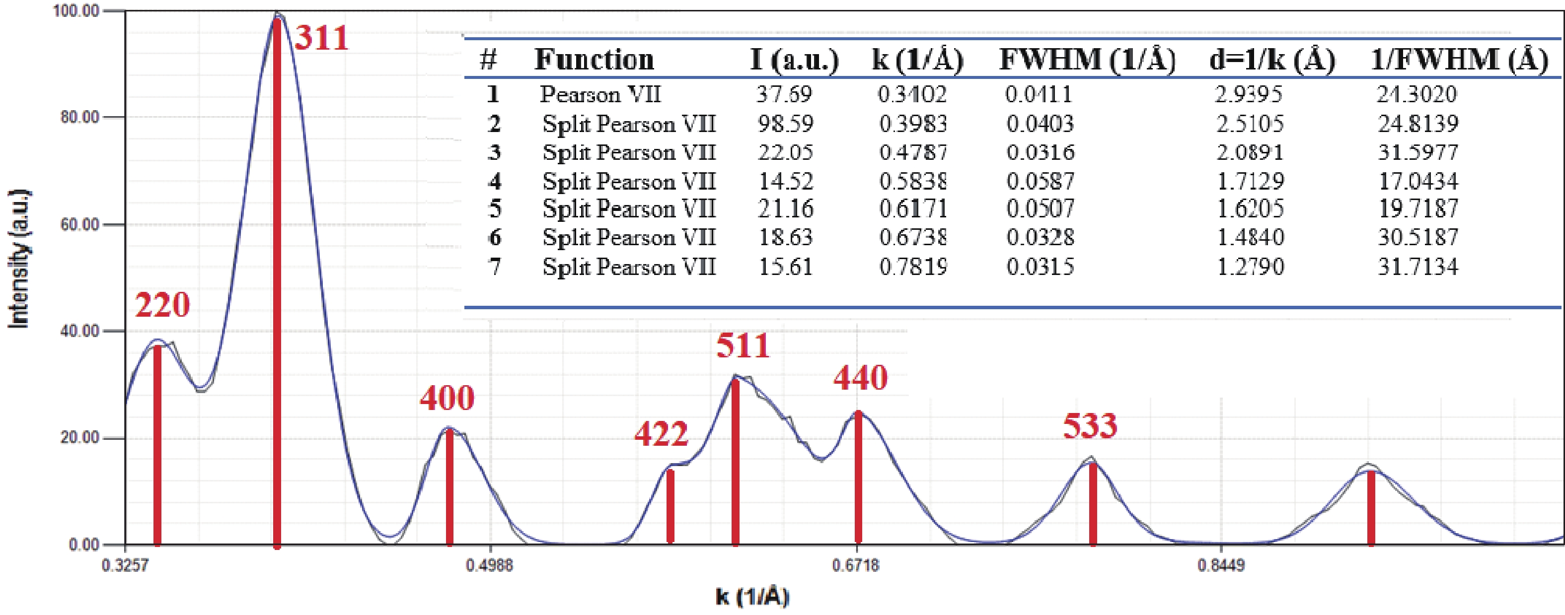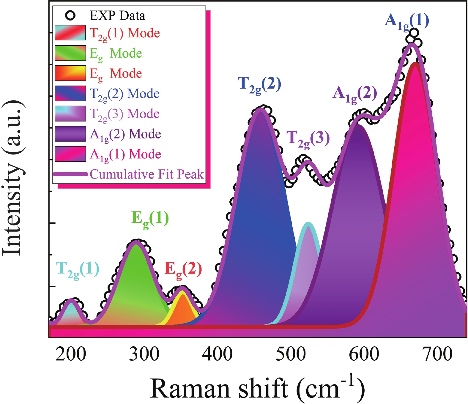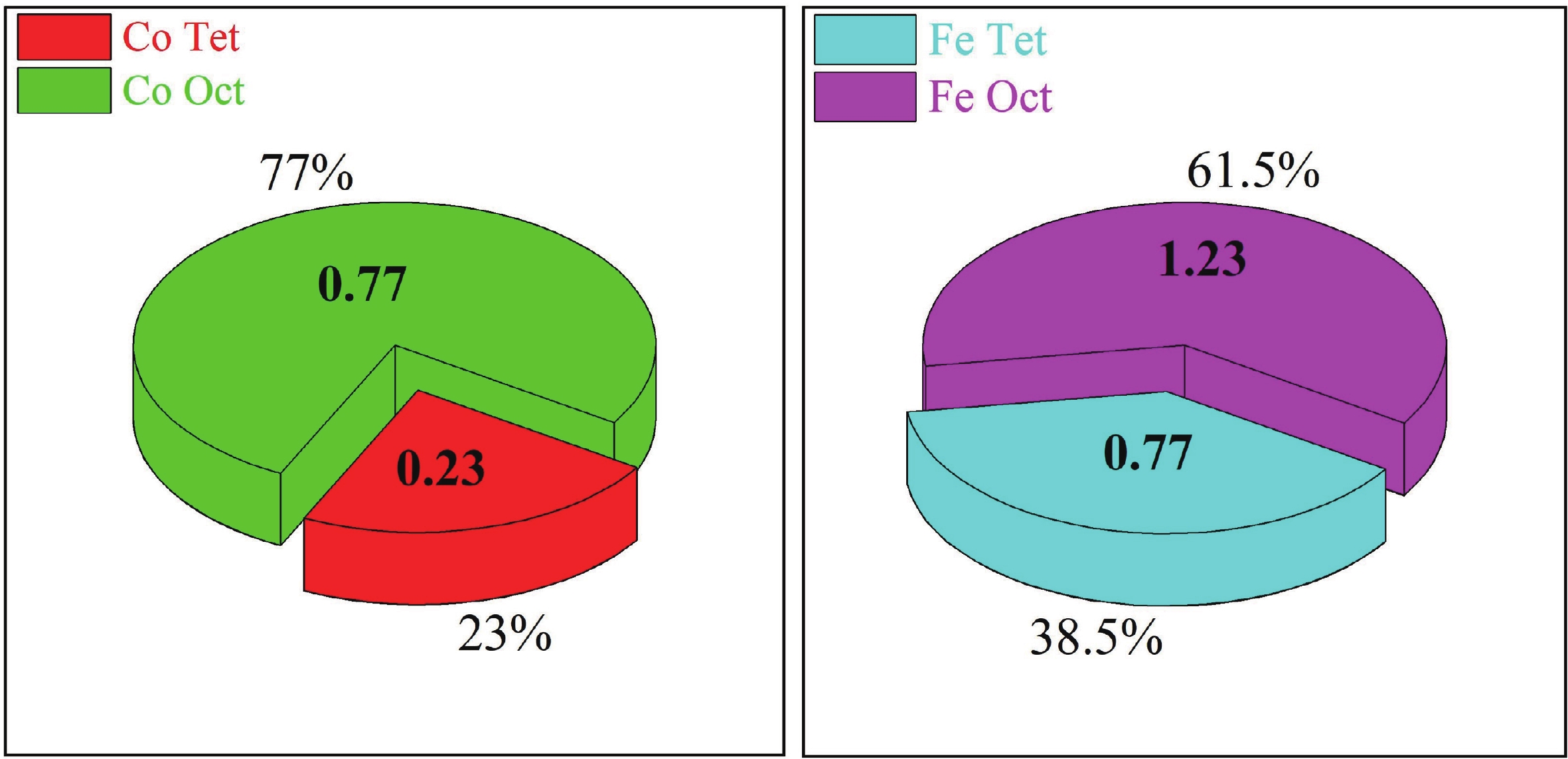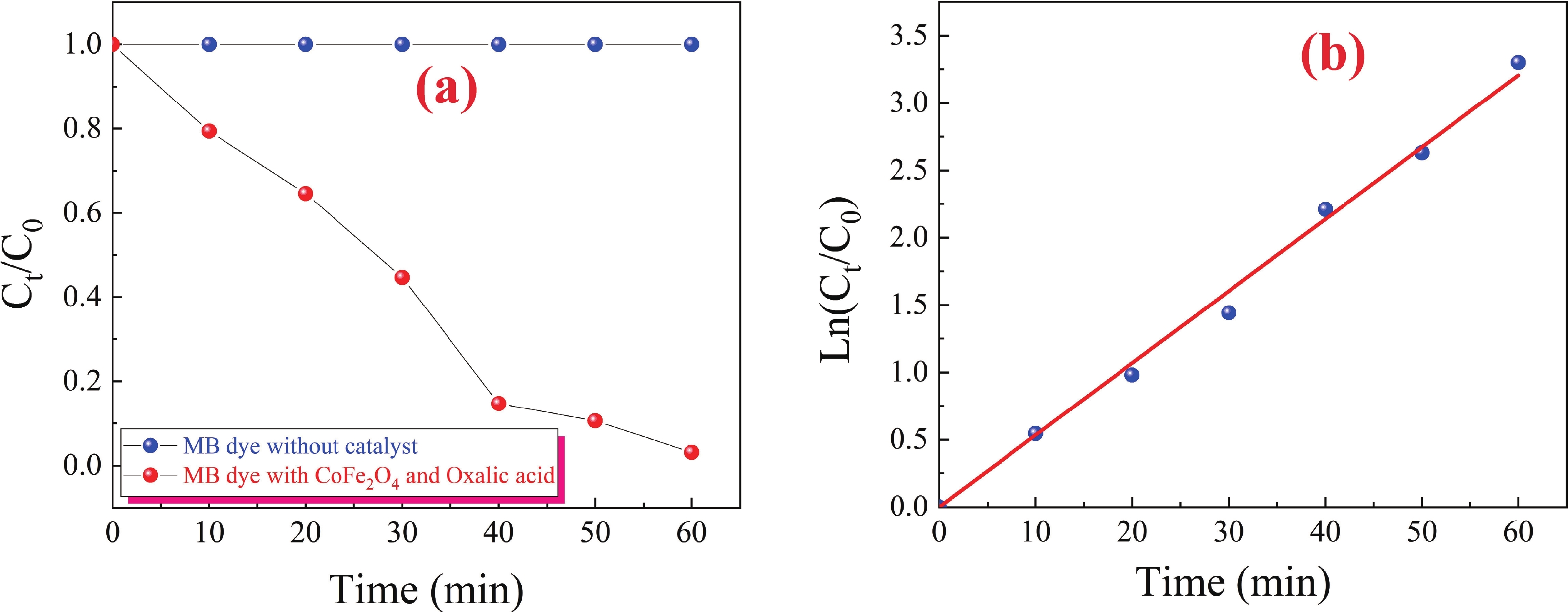 This study investigates the effect of apple extract on CoFe2O4 nanoparticles synthesized via a green self-ignition method. High resolution transmission electron microscope (HRTEM) showed nanometric particles with varied shapes, while X-ray diffraction (XRD) and Rietveld refinement confirmed a facecentered cubic (Fd3̅m) structure. Mössbauer spectroscopy revealed a Zeeman sextet pattern with only Fe3+ ions. Ultra violet vissible nearinfrared (UV–Vis–NIR) spectra indicated strong absorbance in the visible and NIR regions, suggesting optoelectronic potential. The nanoparticles demonstrated high photo-Fenton catalytic efficiency, degrading 96.88% of Methylene Blue under visible light. They also exhibited 100% adsorption capacities for Cr3+ and Pb2+, making them effective for water treatment. These properties were attributed to a large surface area (347.04 m2/g), mesoporous structure, and mixed spinel phase. ANOVA and Tukey’s honestly significant difference (HSD) tests confirmed that contact time and adsorbent dosage significantly affected pollutant removal. Additionally, strong antimicrobial activity highlighted their biotechnological relevance. The inclusion of apple extract enhanced structural and functional features, expanding application prospects in spin valves, magnetic recording, refrigeration, microwave technologies (C to Ku bands), optoelectronics, and biotechnology. Future work should explore the photo-Fenton degradation mechanism and optimize synthesis for scalable production, aiming to maximize their industrial utility. -