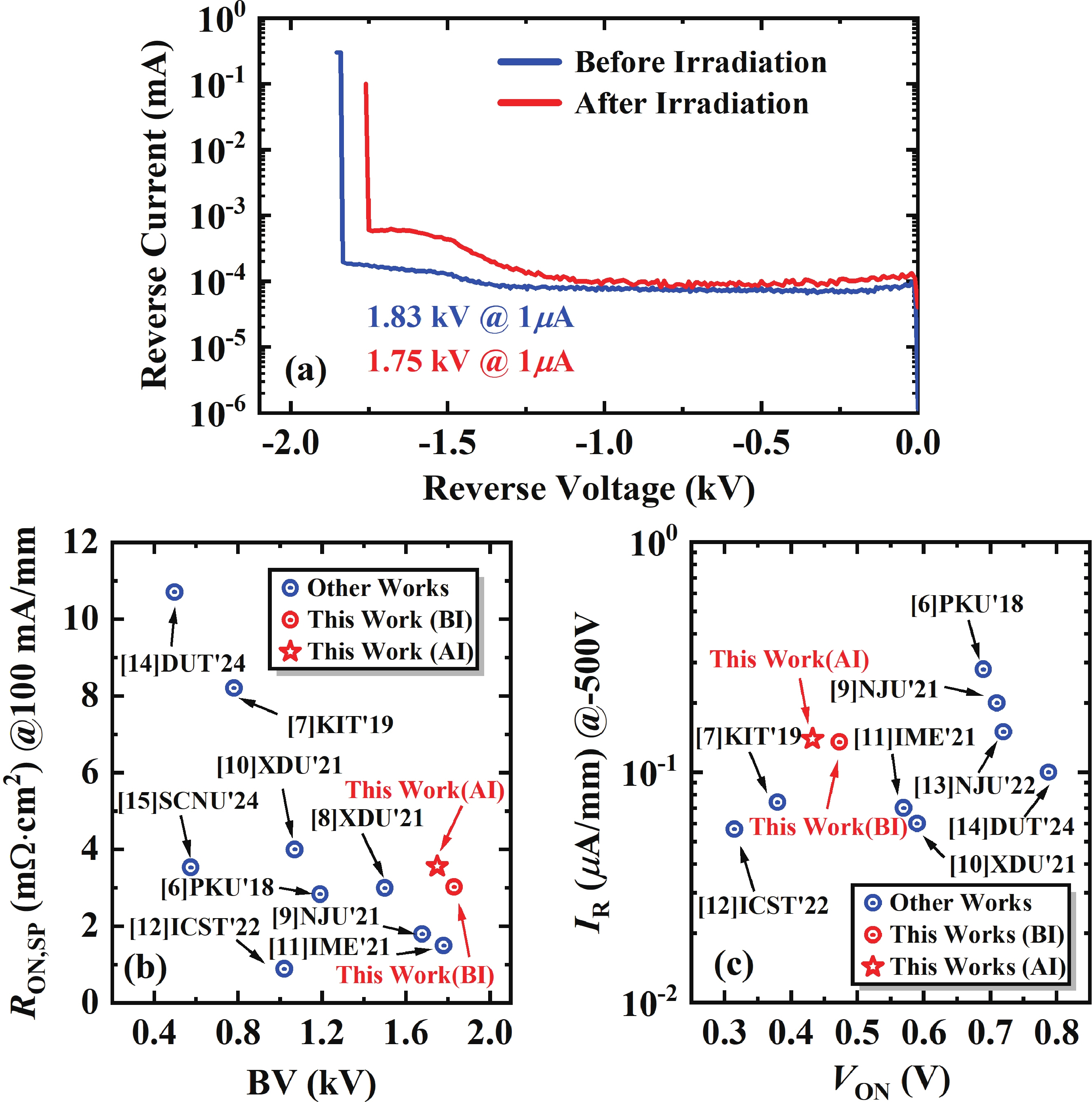 [1] Wei X, Zhang X D, Tang W X, et al. 2.0 kV/2.1 mΩ·cm2 lateral p-GaN/AlGaN/GaN hybrid anode diodes with hydrogen plasma treatment. IEEE Electron Device Lett, 2022, 43(5), 693 doi: 10.1109/LED.2022.3159240[2] Liu X K, Wang H F, Wu J Y, et al. Vertical GaN Schottky barrier diode with record low contact resistivity on N-polarity using ultrathin ITO interfacial layer. IEEE Trans Electron Devices, 2023, 70(4), 1601 doi: 10.1109/TED.2023.3241565[3] Sun N, Wang R H, Huang H L, et al. 1500 V recessed-free GaN-based HEMTs with ultrathin barrier epitaxial structure. Appl Phys Lett, 2024, 125(23), 232102 doi: 10.1063/5.0235148[4] Zheng X, Feng S W, Peng C, et al. Evidence of GaN HEMT Schottky gate degradation after gamma irradiation. IEEE Trans Electron Devices, 2019, 66(9), 3784 doi: 10.1109/TED.2019.2928560[5] Liu S, Zhang J C, Zhao S L, et al. Characterization of trap states in AlN/GaN superlattice channel high electron mobility transistors under total-ionizing-dose with 60Co γ-irradiation. Appl Phys Lett, 2022, 120(20), 202102 doi: 10.1063/5.0088510[6] Zhang T, Zhang J C, Zhou H, et al. A > 3 kV/2.94 mΩ·cm2 and low leakage current with low turn-on voltage lateral GaN Schottky barrier diode on silicon substrate with anode engineering technique. IEEE Electron Device Lett, 2019, 40(10), 1583 doi: 10.1109/LED.2019.2933314[7] Zhang T, Wang Y, Zhang Y N, et al. Comprehensive annealing effects on AlGaN/GaN Schottky barrier diodes with different work-function metals. IEEE Trans Electron Devices, 2021, 68(6), 2661 doi: 10.1109/TED.2021.3074896[8] Gao J N, Jin Y F, Xie B, et al. Low ON-resistance GaN Schottky barrier diode with high VON uniformity using LPCVD Si3N4 compatible self-terminated, low damage anode recess technology. IEEE Electron Device Lett, 2018, 39(6), 859 doi: 10.1109/LED.2018.2830998[9] Lee J H, Im K S, Kim J K, et al. Performance of recessed anode AlGaN/GaN Schottky barrier diode passivated with high-temperature atomic layer-deposited Al2O3 layer. IEEE Trans Electron Devices, 2019, 66(1), 324 doi: 10.1109/TED.2018.2875356[10] Zhang T, Lv Y G, Li R H, et al. Current-collapse suppression of high-performance lateral AlGaN/GaN Schottky barrier diodes by a thick GaN cap layer. IEEE Electron Device Lett, 2021, 42(4), 477 doi: 10.1109/LED.2021.3057917[11] Xu R, Chen P, Liu M H, et al. 2.7-kV AlGaN/GaN Schottky barrier diode on silicon substrate with recessed-anode structure. Solid State Electron, 2021, 175, 107953 doi: 10.1016/j.sse.2020.107953[12] Wang H Y, Mao W, Yang C, et al. Lateral AlGaN/GaN Schottky barrier diode with arrayed p-GaN islands termination. IEEE Trans Electron Devices, 2021, 68(12), 6046 doi: 10.1109/TED.2021.3118326[13] Kang X W, Zheng Y K, Wu H, et al. Thin-barrier gated-edge termination AlGaN/GaN Schottky barrier diode with low reverse leakage and high turn-on uniformity. Semicond Sci Technol, 2021, 36(9), 094001 doi: 10.1088/1361-6641/ac0b93[14] Yang C Y, Wu J H, Chung C H, et al. Optimization of forward and reverse electrical characteristics of GaN-on-Si Schottky barrier diode through ladder-shaped hybrid anode engineering. IEEE Trans Electron Devices, 2022, 69(12), 6644 doi: 10.1109/TED.2022.3217999[15] Xu R, Chen P, Zhou J, et al. High power figure-of-merit, 10.6-kV AlGaN/GaN lateral Schottky barrier diode with single channel and sub-100-µm anode-to-cathode spacing. Small, 2022, 18(37), e2107301 doi: 10.1002/smll.202107301[16] Dai J X, Yu H M, Huang H L, et al. Recess-free thin-barrier AlGaN/GaN Schottky barrier diodes with ultra-low leakage current: Experiment and simulation study. Appl Phys Lett, 2024, 124(20), 202102 doi: 10.1063/5.0188134[17] Shi Y H, Li G X, He Y H, et al. Low turn-on voltage AlGaN/GaN Schottky barrier diode with a low work function anode and high work function field plate. Appl Phys Lett, 2024, 125(12), 123501 doi: 10.1063/5.0223396[18] Zhang T, Li R H, Lu J, et al. A 0.43 V/90 nA/mm lateral AlGaN/GaN Schottky barrier diode with plasma-free groove anode technique. IEEE Electron Device Lett, 2021, 42(12), 1747 doi: 10.1109/LED.2021.3123652[19] Visvkarma A K, Sehra K, Chanchal, et al. Impact of gamma radiations on static, pulsed I–V, and RF performance parameters of AlGaN/GaN HEMT. IEEE Trans Electron Devices, 2022, 69(5), 2299 doi: 10.1109/TED.2022.3161402[20] Aoshima K, Horita M, Jun S D. Correlation between non-ionizing energy loss and production rate of electron trap at EC–(0.12–0.20) eV formed in gallium nitride by various types of radiation. Appl Phys Lett, 2023, 122(1), 012106 doi: 10.1063/5.0128709[21] Tang Y, Zhou X T, Zhang B Y, et al. Comparison of proton irradiation effects on electrical properties of quasi-vertical and lateral GaN Schottky barrier diodes. IEEE Trans Nucl Sci, 2024, 72(1), 17 doi: 10.1109/TNS.2024.3520476[22] Pu T F, Li X B, Wu J Y, et al. Recessed anode AlGaN/GaN Schottky barrier diode for temperature sensor application. IEEE Trans Electron Devices, 2021, 68(10), 5162 doi: 10.1109/TED.2021.3105498[23] Liu J Y, He S, Xu G W, et al. The characteristics of line-shaped defects and their impact mechanism on device performance in β-Ga2O3 Schottky barrier diodes. Appl Phys Lett, 2025, 126(1), 012111 doi: 10.1063/5.0244107[24] Wu J Y, Liao Z L, Wang H F, et al. Ultra-low turn-on voltage (0.37 V) vertical GaN-on-GaN Schottky barrier diode via oxygen plasma treatment. Appl Phys Lett, 2023, 123(21), 213505 doi: 10.1063/5.0171406[25] Chen H Y, Zhang T, Su H K, et al. A 614 MW/cm2 AlGaN-channel Schottky barrier diode with high breakdown voltage and high temperature sensitivity. Appl Phys Lett, 2025, 126(1), 012112 doi: 10.1063/5.0248171[26] Roul B, Mukundan S, Chandan G, et al. Barrier height inhomogeneity in electrical transport characteristics of InGaN/GaN heterostructure interfaces. AIP Adv, 2015, 5(3), 037130 doi: 10.1063/1.4916264[27] Laurent M A, Gupta G, Suntrup D J III, et al. Barrier height inhomogeneity and its impact on (Al, In, Ga)N Schottky diodes. J Appl Phys, 2016, 119(6), 064501 doi: 10.1063/1.494153