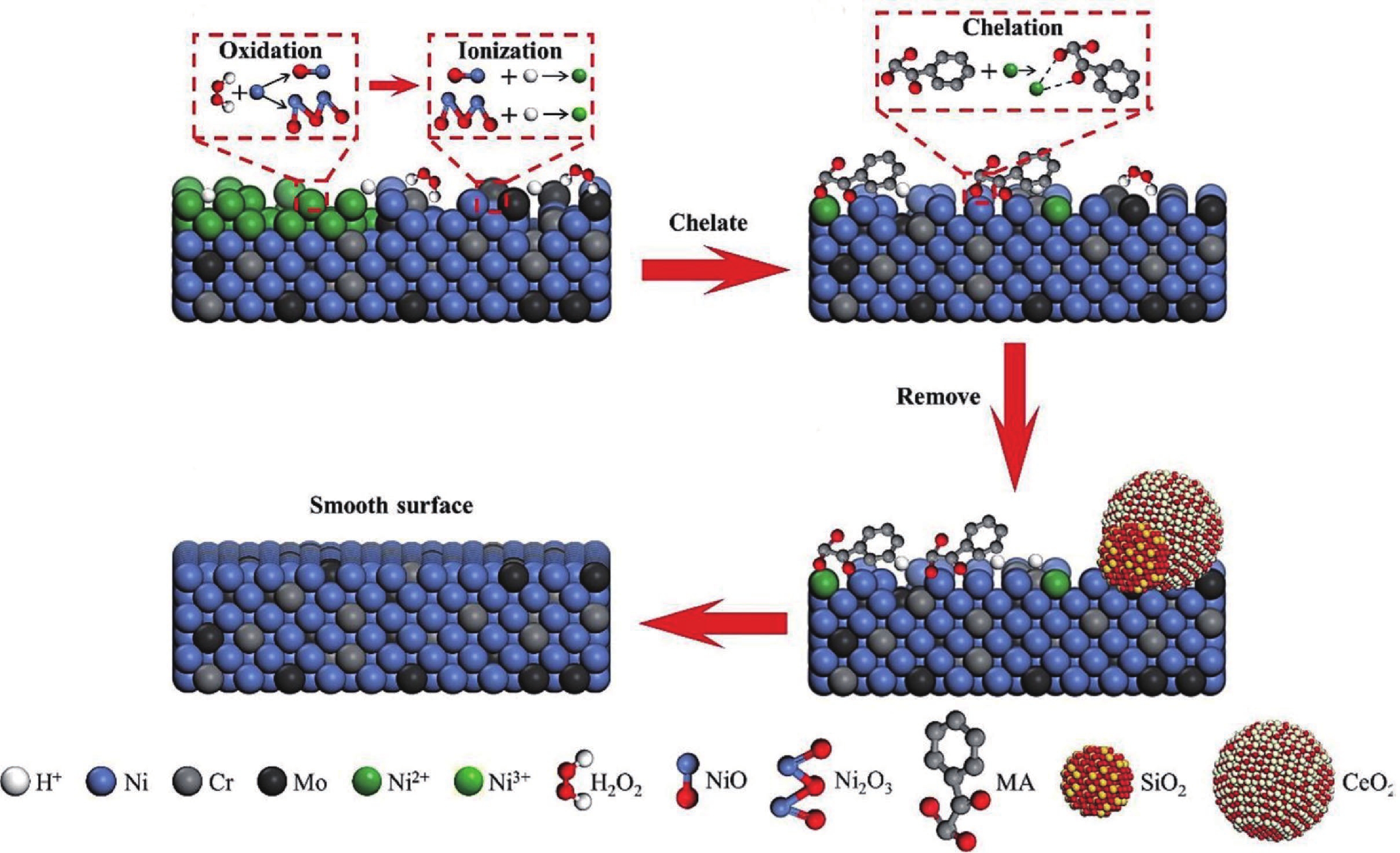 [1] Hong J, Niu X H, Wang J, et al. Research on Si (100) crystal substrate CMP based on FA/O alkaline slurry. Appl Surf Sci, 2017, 420: 483 doi: 10.1016/j.apsusc.2017.05.128[2] Lin Z C, Wang R Y, Ma S H. Theoretical model and experimental analysis of chemical mechanical polishing with the effect of slurry for abrasive removal depth and surface morphology of silicon wafer. Tribol Int, 2018, 117: 119 doi: 10.1016/j.triboint.2017.08.021[3] Fisher G, Seacrist M R, Standley R W. Silicon crystal growth and wafer technologies. Proc IEEE, 2012, 100 (Special Centennial Issue): 1454 doi: 10.1109/JPROC.2012.2189786[4] Bu Z Z, Niu F L, Chen J P, et al. Single crystal silicon wafer polishing by pretreating pad adsorbing SiO2 grains and abrasive-free slurries. Mater Sci Semicond Process, 2022, 141: 106418 doi: 10.1016/j.mssp.2021.106418[5] Xu J, Luo J B, Lu X C, et al. Progress in material removal mechanisms of surface polishing with ultra precision. Chin Sci Bull, 2004, 49(16): 1687 doi: 10.1360/04we0035[6] Zhao F, Zhang Z Y, Deng X Q, et al. Atomic surface achieved through a novel cross-scale model from macroscale to nanoscale. Nanoscale, 2024, 16(5): 2318 doi: 10.1039/D3NR05278H[7] Zhong Z W. Recent developments and applications of chemical mechanical polishing. Int J Adv Manuf Technol, 2020, 109(5): 1419 doi: 10.1007/s00170-020-05740-w[8] Meng F N, Zhang Z Y, Gao P L, et al. Design of composite abrasives and substrate materials for chemical mechanical polishing applications. Appl Nanosci, 2020, 10(5): 1379 doi: 10.1007/s13204-019-01211-1[9] Hu X K, Song Z T, Wang H B, et al. Investigation on the controllable growth of monodisperse silica colloid abrasives for the chemical mechanical polishing application. Microelectron Eng, 2010, 87(9): 1751 doi: 10.1016/j.mee.2009.10.005[10] Li G Z, Xiao C, Zhang S B, et al. An experimental investigation of silicon wafer thinning by sequentially using constant-pressure diamond grinding and fixed-abrasive chemical mechanical polishing. J Mater Process Technol, 2022, 301: 117453 doi: 10.1016/j.jmatprotec.2021.117453[11] Pei Z J, Fisher G R, Liu J. Grinding of silicon wafers: A review from historical perspectives. Int J Mach Tools Manuf, 2008, 48(12/13): 1297 doi: 10.1016/j.ijmachtools.2008.05.009[12] Lee D, Lee H, Jeong H. Slurry components in metal chemical mechanical planarization (CMP) process: A review. Int J Precis Eng Manuf, 2016, 17(12): 1751 doi: 10.1007/s12541-016-0201-y[13] Banerjee G, Rhoades R L. Chemical mechanical planarization historical review and future direction. ECS Trans, 2008, 13(4): 1 doi: 10.1149/1.2912973[14] Zhang X Y, Wang C W, Zhou J W, et al. Effect and mechanism of dual-official group of ethanolamines on the chemical mechanical polishing of monocrystalline silicon. ECS J Solid State Sci Technol, 2022, 11(9): 093005 doi: 10.1149/2162-8777/ac911c[15] Seidel H, Csepregi L, Heuberger A, et al. Anisotropic etching of crystalline silicon in alkaline solutions: I. orientation dependence and behavior of passivation layers. J Electrochem Soc, 1990, 137(11): 3612 doi: 10.1149/1.2086277[16] Sinha D. Evaluation of etch behavior of doped silicon wafer in wet cleaning process. J Electrochem Soc, 2008, 155(4): H228 doi: 10.1149/1.2835209[17] Zhang X L, Meng N, Li X H, et al. The role of ammonium citrate and dodecyl pyridinium chloride on chemical mechanical polishing relevant to SiO2 dielectric layer. J Manuf Process, 2023, 107: 333 doi: 10.1016/j.jmapro.2023.10.054[18] Chen J Y, Lin Z H, Jin T Y, et al. Study on incompatible mechanism in chemical mechanical polishing of the novel graphite/diamond composite. Appl Surf Sci, 2023, 641: 158500 doi: 10.1016/j.apsusc.2023.158500[19] Datta D, Rai H, Singh S, et al. Nanoscale tribological aspects of chemical mechanical polishing: A review. Appl Surf Sci Adv, 2022, 11: 100286 doi: 10.1016/j.apsadv.2022.100286[20] Seo J, Paik U. Preparation and characterization of slurry for chemical mechanical planarization (CMP). Advances in chemical mechanical planarization (CMP), 2016, 273: 98 doi: 10.1016/b978-0-08-100165-3.00011-5[21] Kim N Y, Hwang U, Sung J, et al. Particle size dependence of nanoclustered ceria abrasives on surface activity and chemical mechanical planarization performance. Appl Surf Sci, 2024, 663: 160123 doi: 10.1016/j.apsusc.2024.160123[22] Chen Y, Xia Y F, Wang C, et al. Nanocasting synthesis of mesoporous CeO2 particle abrasives from mesoporous SiO2 hard templates for enhanced chemical mechanical polishing performance. Ceram Int, 2024, 50(24): 53818 doi: 10.1016/j.ceramint.2024.10.236[23] Zhang J W, Ren G Y, Wang L, et al. Effect of nanosilica abrasive properties on tungsten chemical mechanical planarization. J Mater Sci Mater Electron, 2024, 35(5): 338 doi: 10.1007/s10854-023-11914-5[24] Gong J T, Wang W L, Liu W L, et al. Polishing mechanism of CMP 4H-SiC crystal substrate (0001) Si surface based on an alumina (Al2O3) abrasive. Materials, 2024, 17(3): 679 doi: 10.3390/ma17030679[25] Kim N H, Choi G W, Seo Y J, et al. Effects of various oxidizers on chemical mechanical polishing performance of nickel for microelectromechanical system applications. J Vac Sci Technol A Vac Surf Films, 2006, 24(4): 1297 doi: 10.1116/1.2194926[26] Zhang P J, Lei H, Zhang Z F, et al. Synthesis of Al2O3@MnO2 composite abrasives and their chemical mechanical polishing performance on silicon carbide (SiC). Ceram Int, 2024, 50(11): 19935 doi: 10.1016/j.ceramint.2024.03.120[27] Park S W, Seo Y J, Lee W S. A study on the chemical mechanical polishing of oxide film using a zirconia (ZrO2)-mixed abrasive slurry (MAS). Microelectron Eng, 2008, 85(4): 682 doi: 10.1016/j.mee.2007.12.049[28] Wu P F, Liu N, Li X, et al. Material removal rate model for chemical–mechanical polishing of single-crystal SiC substrates using agglomerated diamond abrasive. Precis Eng, 2024, 88: 572 doi: 10.1016/j.precisioneng.2024.04.002[29] Ahn Y, Yoon J Y, Baek C W, et al. Chemical mechanical polishing by colloidal silica-based slurry for micro-scra