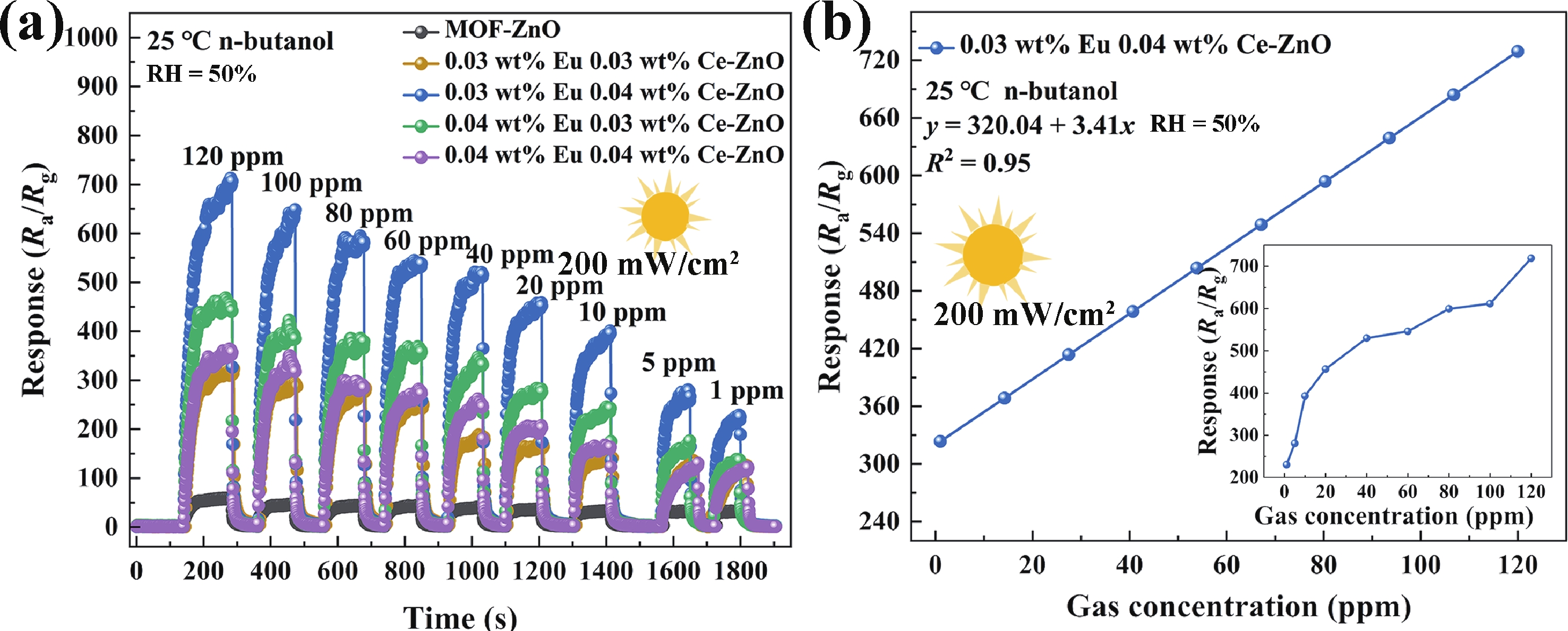 Yinzhong Liu, Xuechun Yang, Yun Guo, Lingchao Wang, Xiaofan Li, Hui Guo, Yiyu Qiao, Xiaotao Zhu, Lingli Cheng, Zheng Jiao. Harnessing Eu/Ce-codoped ZnO nanomaterial derived from MOF precursor for high-performance n-butanol sensing under UV activation at ambient temperature[J]. Journal of Semiconductors, 2026, 47(2): 022503. doi: 10.1088/1674-4926/25070023