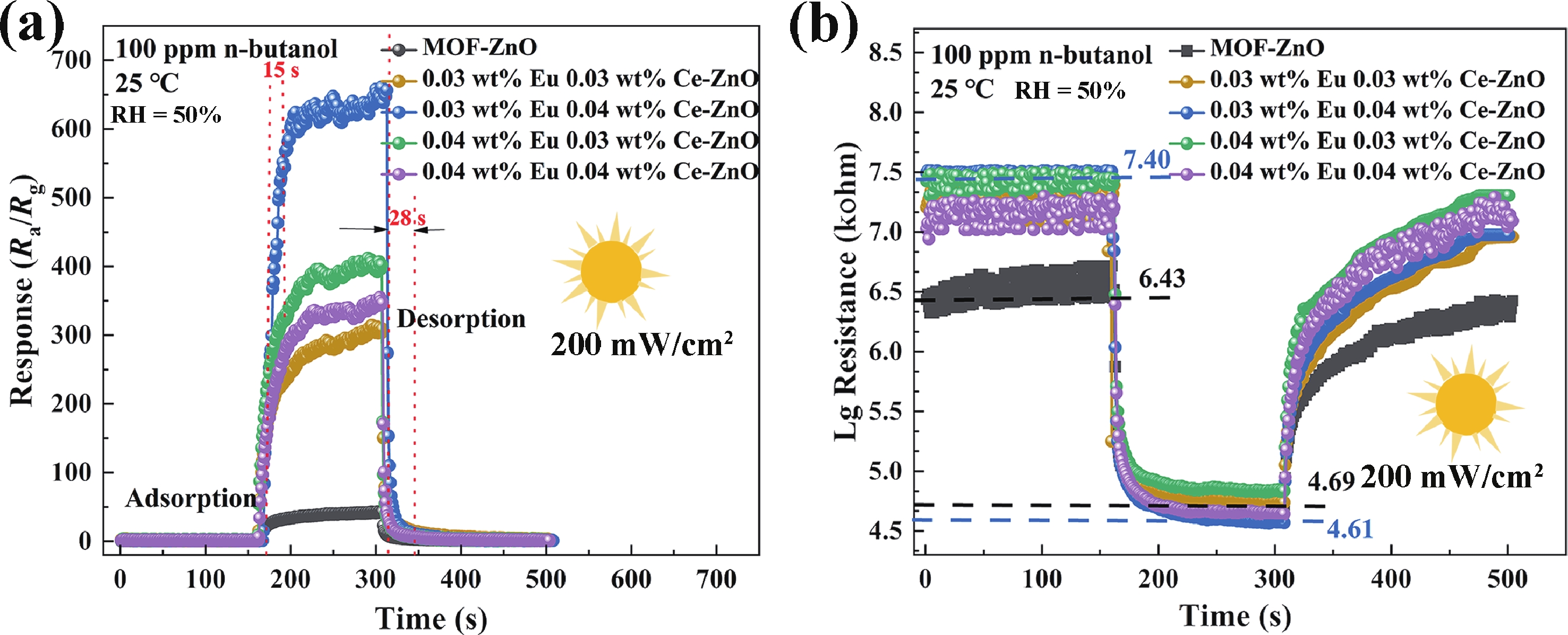 Y Z Liu, X C Yang, Y Guo, L C Wang, X F Li, H Guo, Y Y Qiao, X T Zhu, L L Cheng, and Z Jiao, Harnessing Eu/Ce-codoped ZnO nanomaterial derived from MOF precursor for high-performance n-butanol sensing under UV activation at ambient temperature[J]. J. Semicond., 2026, 47(2): 022503 doi: 10.1088/1674-4926/25070023