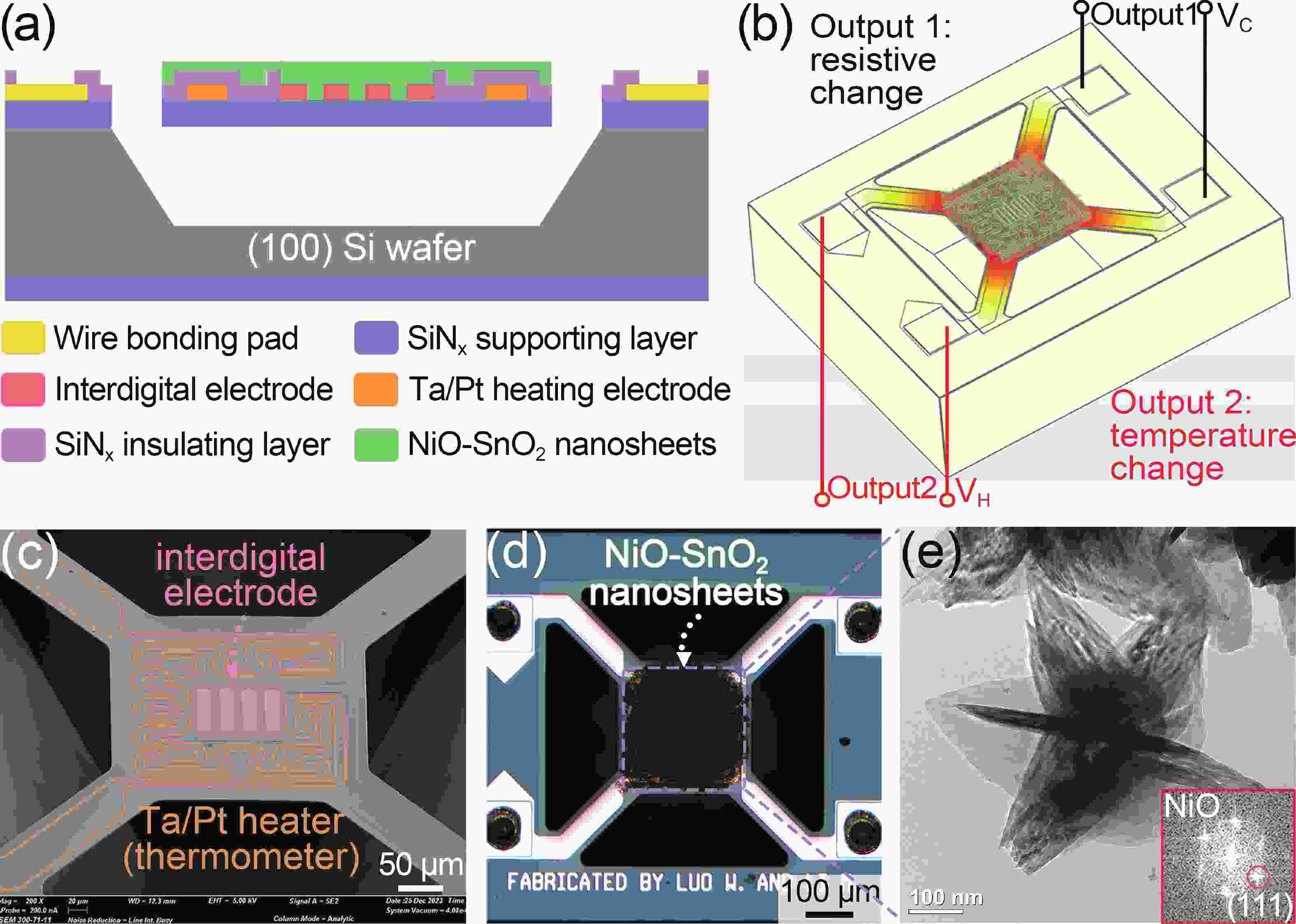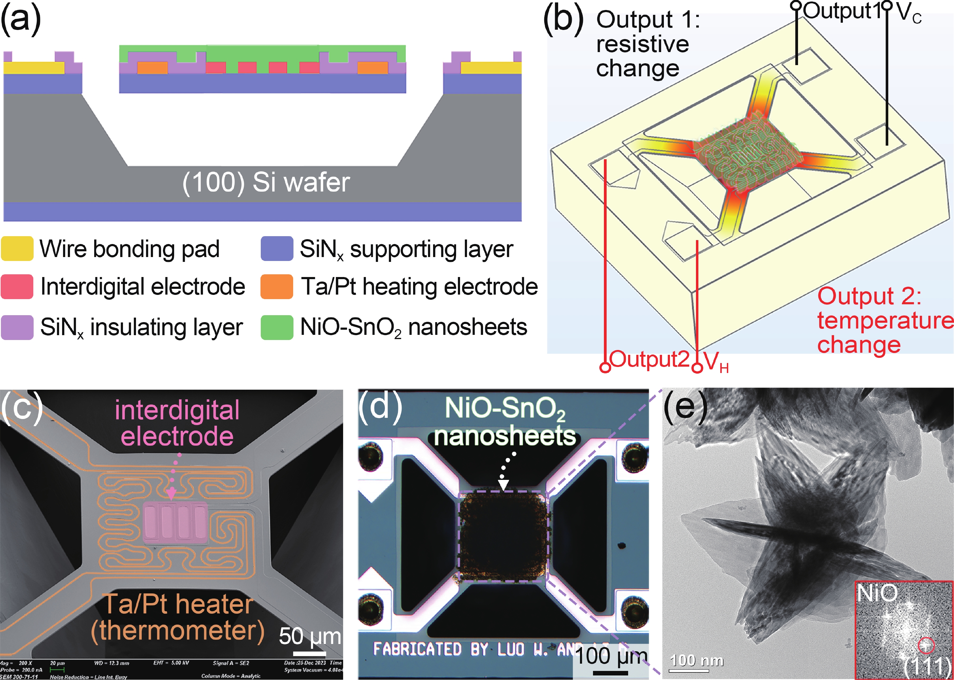 Selectivity remains a significant challenge for gas sensors. In contrast to conventional gas sensors that depend solely on conductivity to detect gases, we exploited a single NiO-doped SnO2 sensor to simultaneously monitor transient changes in both sensor conductivity and temperature. The distinct response profiles of H2 and NH3 gases were attributed to differences in their redox rates and enthalpy changes during chemical reactions, which provided an opportunity for gas identification using machine learning (ML) algorithms. The test results indicate that preprocessing the extracted calorimetric and chemi-resistive parameters using the principal component analysis (PCA), followed by the application of ML classifiers for identification, enables a 100% accuracy for both target analytes. This work presents a facile gas identification method that enhances chip-level sensor applications while minimizing the need for complex sensor arrays.