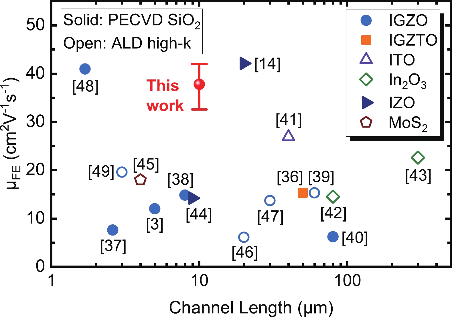 The increasing pursuit of ultra-high resolution displays has driven the demand for thin film transistors (TFTs) with higher mobility, especially on flexible substrates. In this work, we developed indium tin oxide (ITO) TFTs on flexible substrates for the first time and achieved a remarkable average mobility of 39.1 cm2·V−1·s−1, via mass-production compatible processes utilizing SiO2 gate dielectric. Benefiting from the ultra-flat surface and extremely low coefficient of thermal expansion (CTE) of our PI substrate, the ITO TFTs exhibit excellent large-scale uniformity. Additionally, the TFTs generate minor variations of −5.5% and +0.45 V in mobility and threshold voltage under a bending radius of 7 mm, respectively. They stay fully functional even after a dynamic bending test up to 13 000 cycles, observing no obvious degradation in mobility and threshold voltage. The reliable mechanical flexibility and robust bending durability demonstrate their great potential for ultra-high resolution flexible displays in the future.