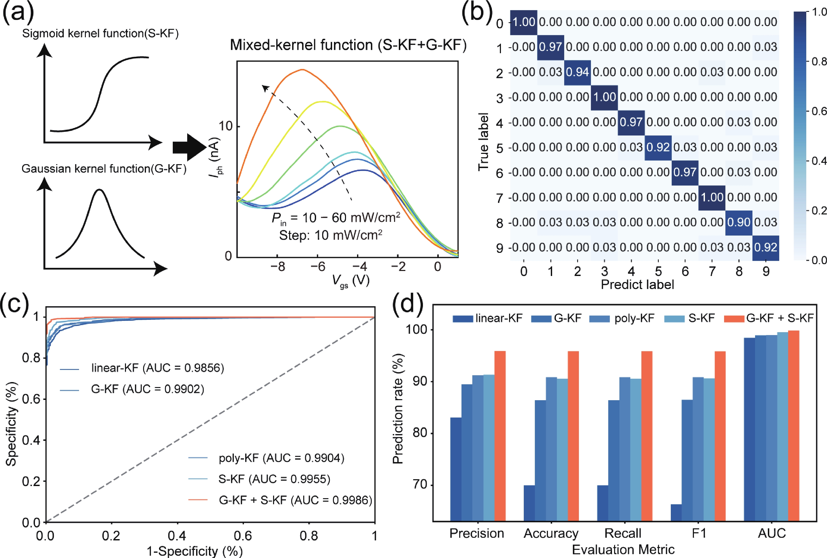 The von Neumann bottleneck in conventional computing architectures presents a significant challenge for data-intensive artificial intelligence applications. A promising approach involves designing specialized hardware with on-chip parameter tunability, which directly accelerates machine learning functions. This work demonstrates a continuously tunable mixed-kernel function physically realized within a van der Waals heterostructure. We designed and fabricated a MoTe2/MoS2 type-Ⅱ vertical heterojunction phototransistor, which exhibits a non-monotonic, Gaussian-like optoelectronic response owing to its unique interlayer charge transfer mechanism. This intrinsic physical behavior directly maps to a mixed-kernel function combining Gaussian and Sigmoid characteristics. Furthermore, the hardware kernel can be continuously modulated by in-situ tuning of external optical stimuli. The mixed-kernel exhibited exceptional performance, achieving precision, accuracy, and area under the curve (AUC) values of 95.8%, 96%, and 0.9986, respectively, significantly outperforming conventional kernels. By successfully embedding a complex, adaptable mathematical function into the intrinsic physical properties of a single device, this work pioneers a novel pathway toward next-generation, energy-efficient intelligent systems with hardware-level adaptability.