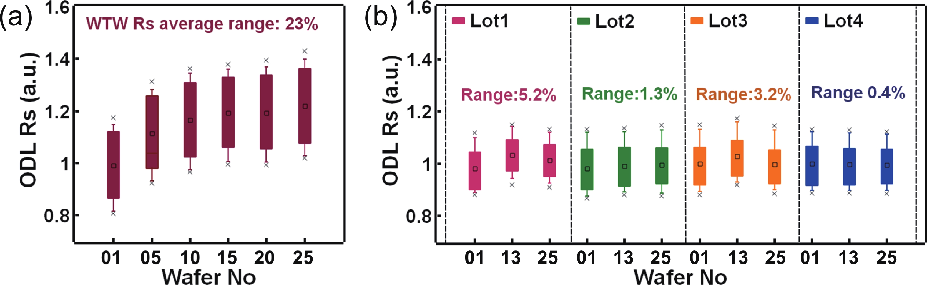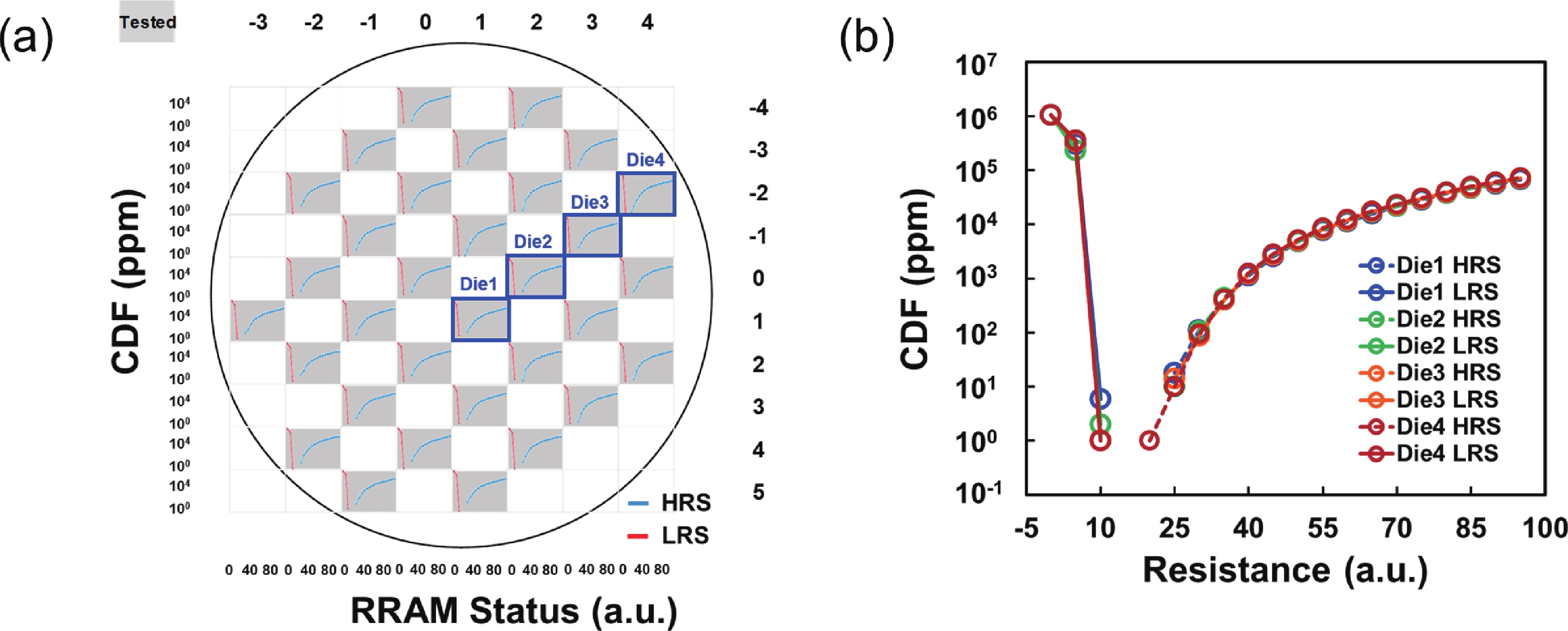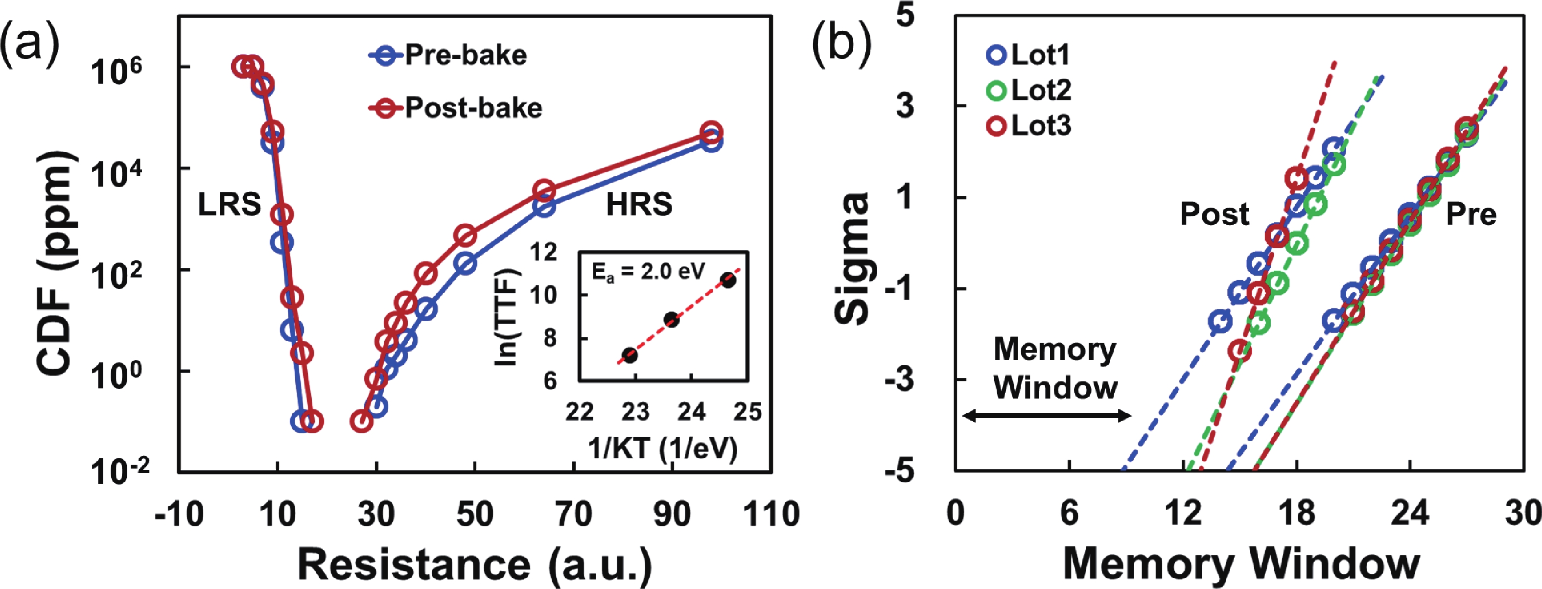 To address the challenges of complexity, power consumption, and cost constraints in traditional display driver integrated circuits (DDICs) caused by external NOR Flash and SRAM, this work proposes an embedded resistive random-access memory (RRAM) integration solution based on a 40 nm high-voltage CMOS logic platform. Targeting the yield fluctuations and stability challenges during RRAM mass production, systematic process optimizations are implemented to achieve synergistic improvements in RRAM performance and yield. Through modifications to the film sputtering and pre-deposition treatment, the within-wafer resistance uniformity (RSU) of the oxygen-deficient layer (ODL) thin film is improved from 11% to 8%, while inter-wafer process stability variation reduces from 23% to below 6%. Consequently, the yield of 8 Mb RRAM embedded mass production products increases from 87% to 98.5%. In terms of device performance, the RRAM demonstrates a fast 4.8 ns read speed, exceptional read disturb immunity of 3 × 108 cycles at 95 °C, 103 write/erase endurance cycles for the 1 Mb cells, and data retention of 12.5 years at 125 °C. Post high-temperature operating life (HTOL) testing exhibits stable high/low resistance window. This study provides process optimization strategies and a reliability assurance framework for the mass production of highly integrated, low-power embedded RRAM display driver IC.