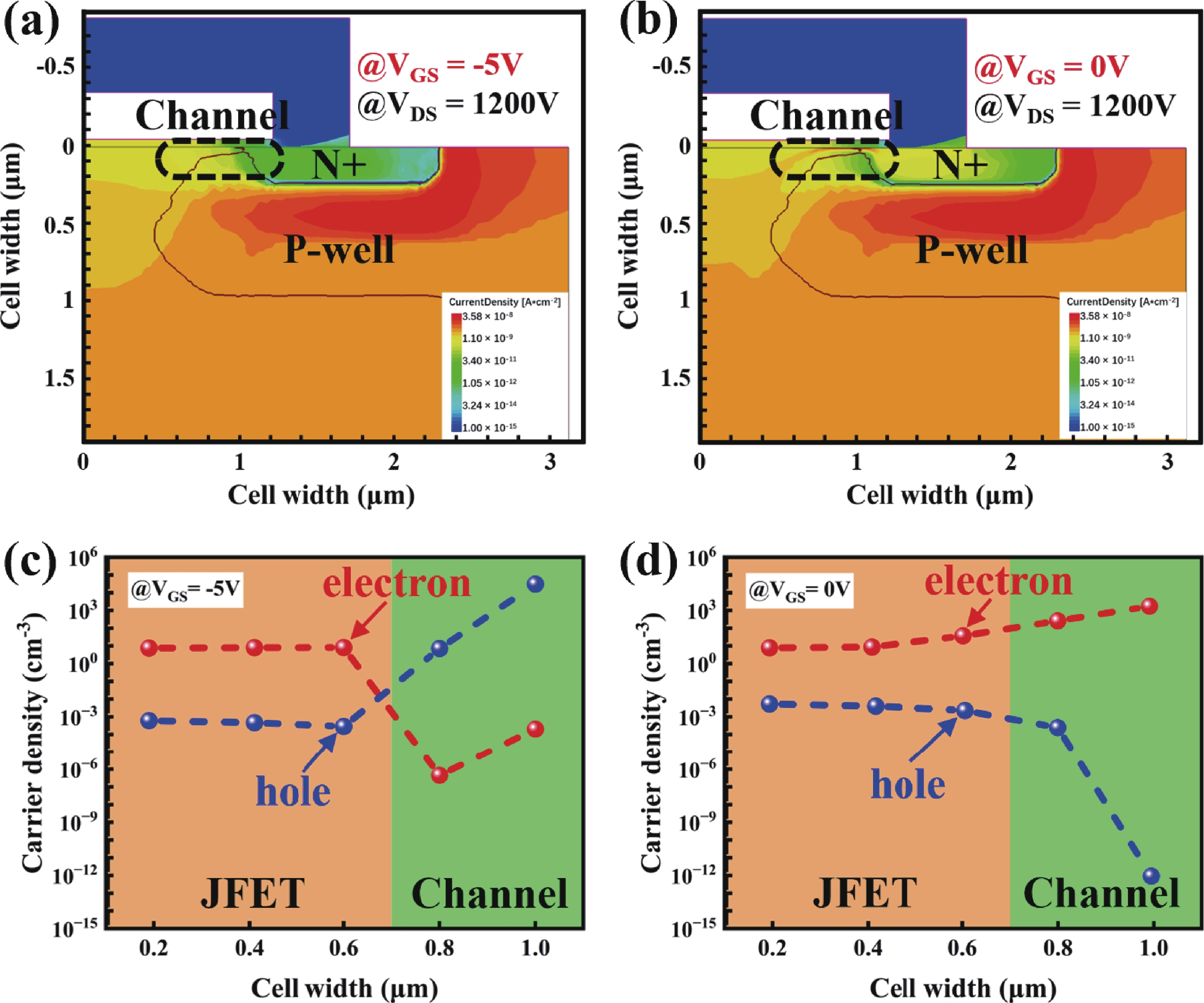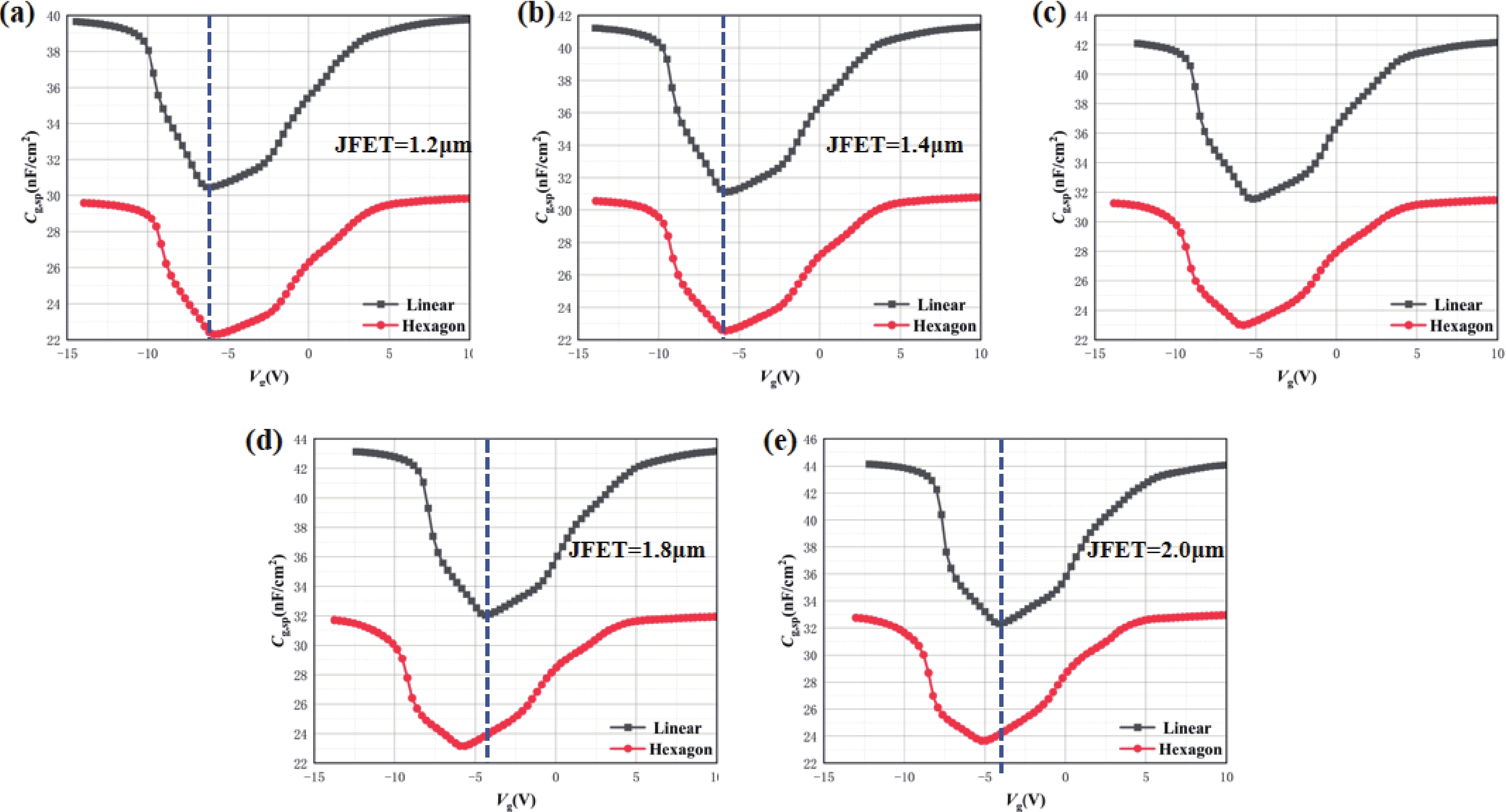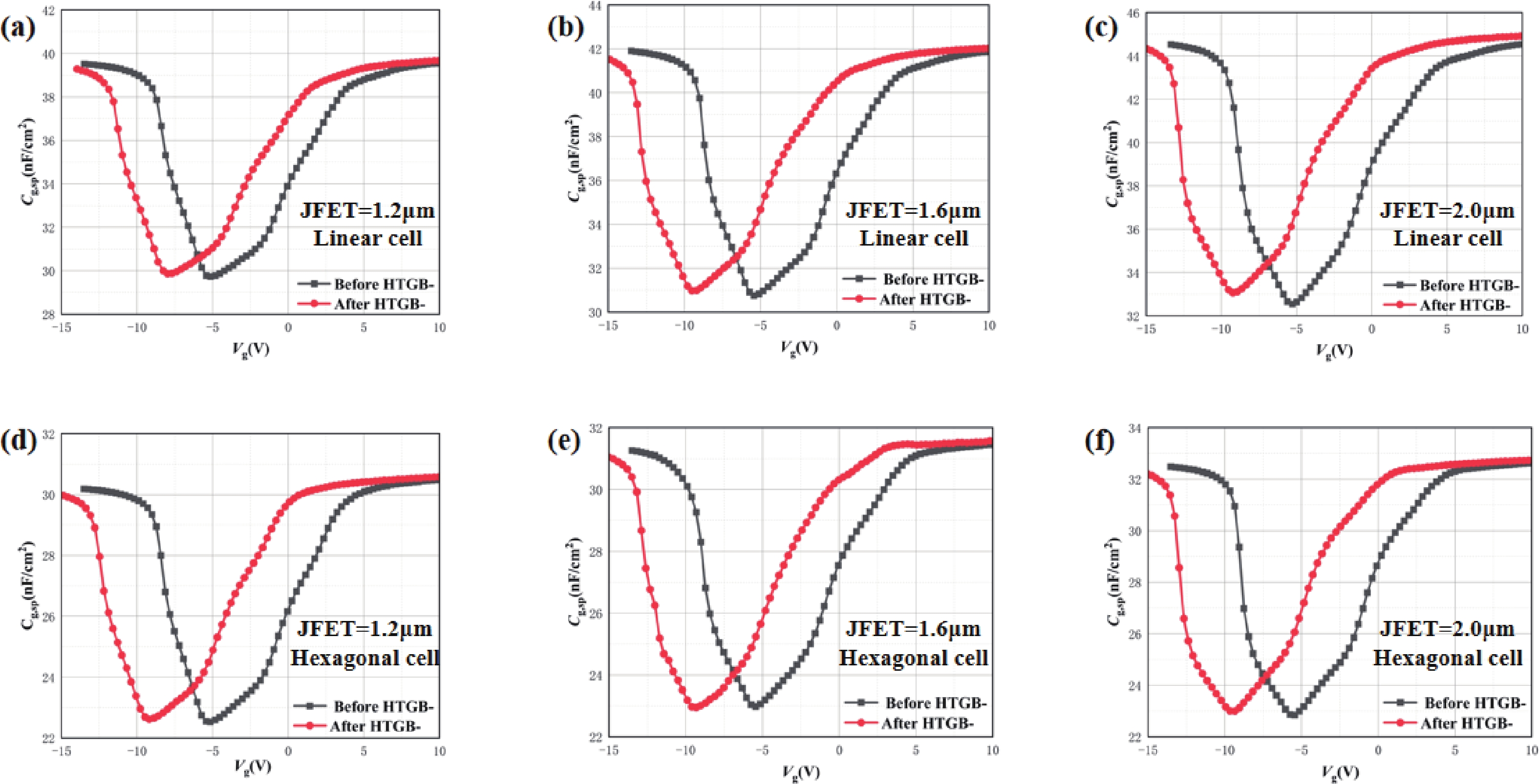 High gate oxide electric field, which can lead to device failure, is a common issue in SiC MOSFETs. To mitigate this issue and ensure high device reliability, an electric field shielding layer (also called depletion layer) in JFET region is always used to reduce the gate oxide electric filed strength (Eox,max). However, there is still a lack of a detection methods to characterize the changes in the depletion layer of the JFET region. In this paper, a type of 1200 V 4H-SiC MOSFET with different JFET widths and cell topologies is designed and fabricated, and an innovative detection method for the depletion layer of JFET region is proposed for the first time. This method is adopted to focus on discussing the influence of the depletion layer formed by different JFET widths on Vg, and the changes in the gate oxide capacitance Cg of hexagonal cells and linear cells during the formation of the JFET depletion layer are studied. Finally, the robustness of different cell topologies and JFET widths is determined by the depletion voltage drift in the high temperature gate reverse bias tests (HTGB−) reliability test.