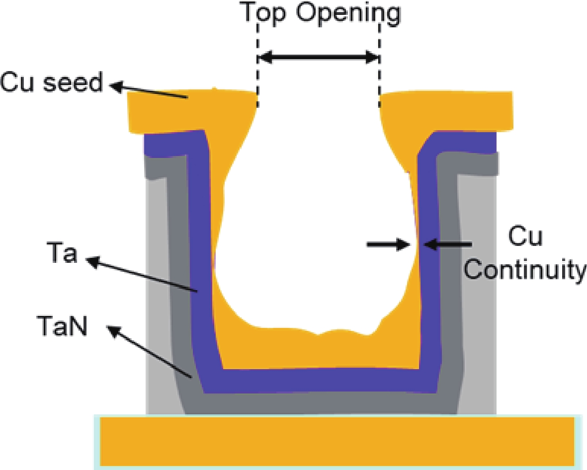 The downscaling of logic devices has posed numerous engineering and manufacturing challenges in copper (Cu) interconnections. The primary failure modes of Cu filling defects are narrow top openings and discontinuous Cu seeds on sidewalls. This study investigates the influence and mechanism of layout on Cu filling defects. Dense line wires with uneven local layouts are prone to defects, which is attributed to the altered distribution of additives in electrochemical plating (ECP), leading to differences in bottom-up filling behavior. It is demonstrated that large-sized metal conductor regions adjacent to dense line wires adsorb substantial amounts of suppressor, resulting in sparse current density in these areas. Given the fixed total local current density, the sparseness of current density in adjacent regions inevitably diverts more current lines to the dense line wire areas. The excessive current density exceeds the local redistribution capacity of additives, causing premature sealing of trench tops and the formation of void defects. A low-current plating process significantly mitigates these defects but may compromise the protective capability of the Cu seed. Additionally, the perimeter density of the layout serves as an effective evaluation index.