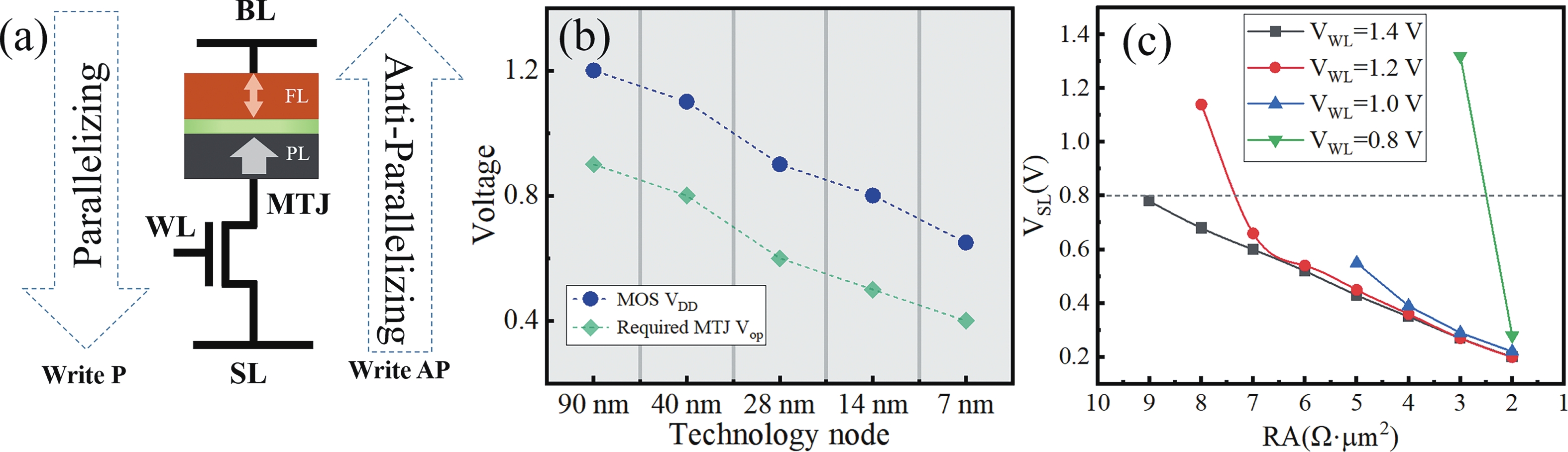 Spin-transfer-torque magnetic random-access memory (STT-MRAM), based on magnetic tunnel junctions (MTJs), is attracting significant attention for applications demanding high reliability and speed. To ensure high TMR which is essential for achieving sufficient sense margin, MTJs typically incorporate relatively thick tunnel barriers, resulting in high operating voltages. As the CMOS technology nodes advance and operating voltages decrease, reducing the MTJ switching voltage becomes imperative. However, MTJs with thinner tunnel barriers generally exhibit significantly degraded read margins and bit error rate, presenting a major challenge for achieving high-density, low-power MRAM. Here, we address this challenge through MgO tunnel barrier engineering and process optimization, successfully reducing the required MOS driving voltage while simultaneously expanding the write margin. Meanwhile, 85% array yield with sub-parts-per-million bit error rates at RA = 7 Ω·μm2 is achieved. These advancements are promising for developing high-density MRAM at advanced technology nodes.