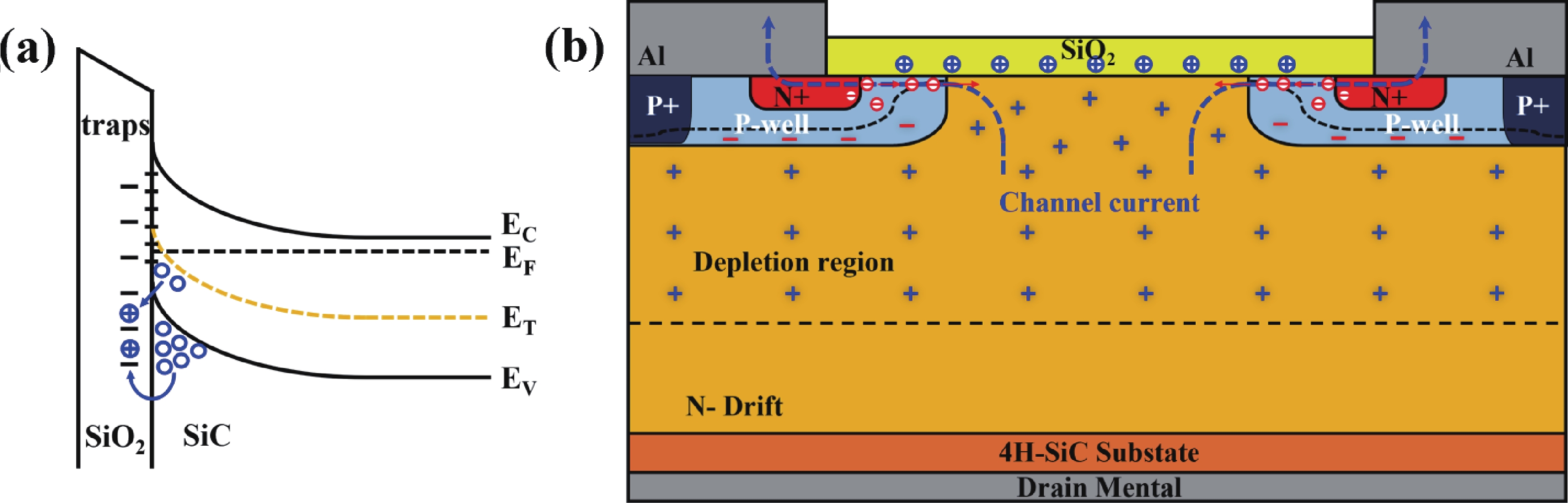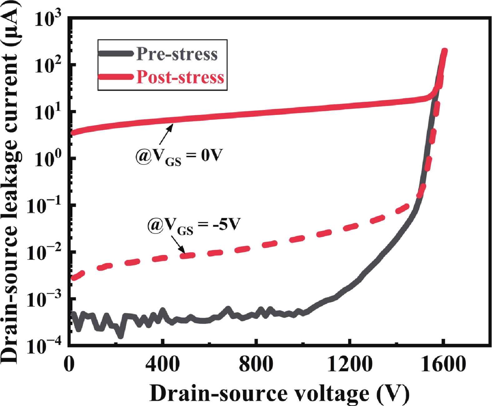 High-temperature reverse bias (HTRB) is one of the most critical reliability for SiC MOSFET, and the termination region is widely regarded as the sensitive area under HTRB stress. Interestingly, through systematically monitoring of the degradation behavior of static electrical parameters under different voltage, this study reveals that the elevated reverse bias (ERB) stress can also induce damage in the gate oxide, which results in the hole trapping and a negative shift of the threshold voltage. Deep level transient spectroscopy (DLTS) measurements were performed and showed that the interface trap density in the gate oxide is promoted after ERB stress. Surprisingly, the reverse leakage current after ERB stress is significantly deteriorated at a gate bias of 0 V, while effectively suppressed by applying a negative gate bias (−5 V), which point to the synergistic effects of channel region on the breakdown voltage. Based on the gate oxide degradations and TCAD simulations, it is elucidated that the trapped positive interface charges in gate oxide cause band bending, leading to the formation of an electron accumulation layer in the channel region at 0 V gate bias and thus resulting in a dominant leakage path. This work reveals the impact and mechanism of the ERB stress induced gate oxide damage on the breakdown voltage and highlights the importance of gate oxide protection, which is of great significance for improving the reliability of SiC MOSFETs in elevated voltage applications.