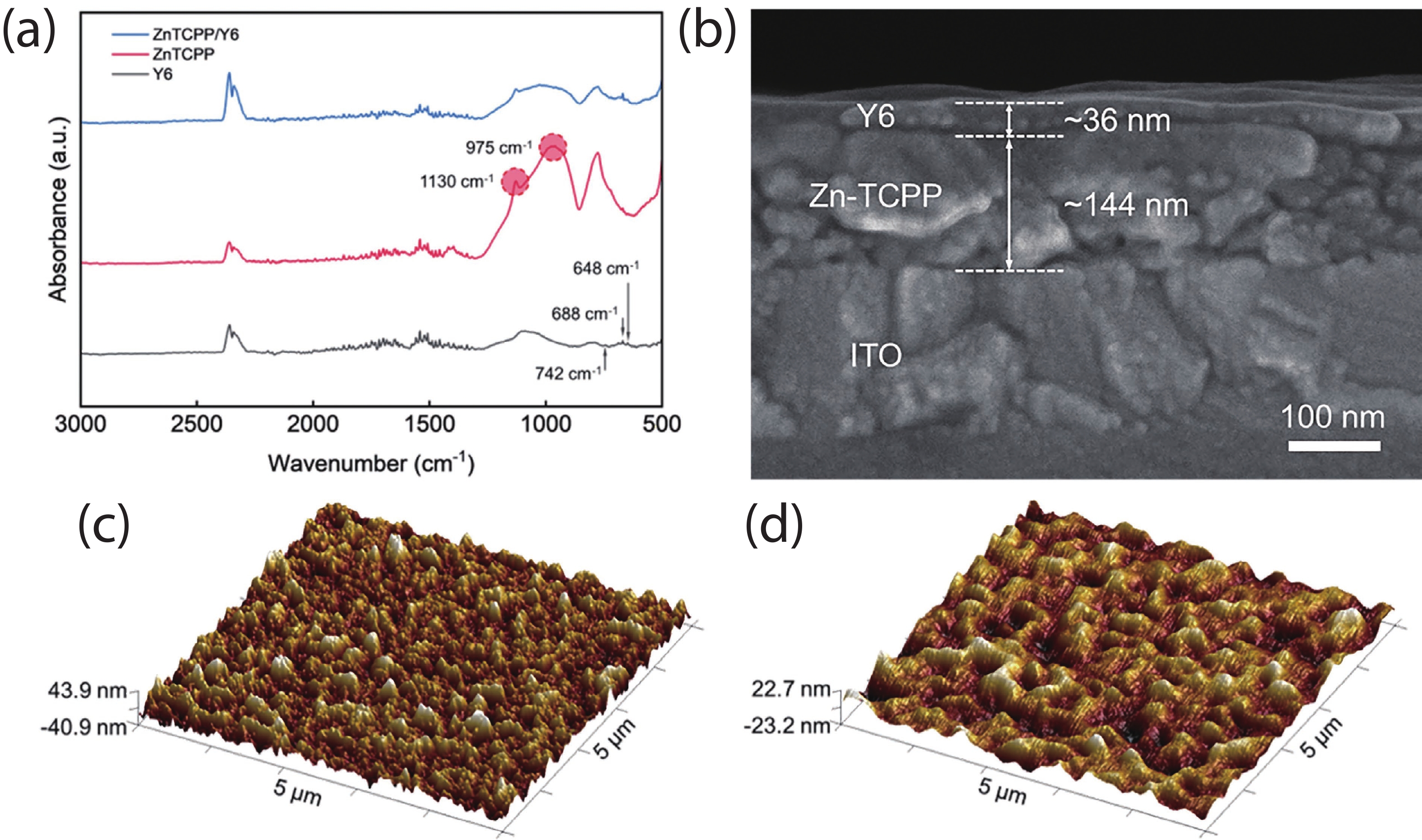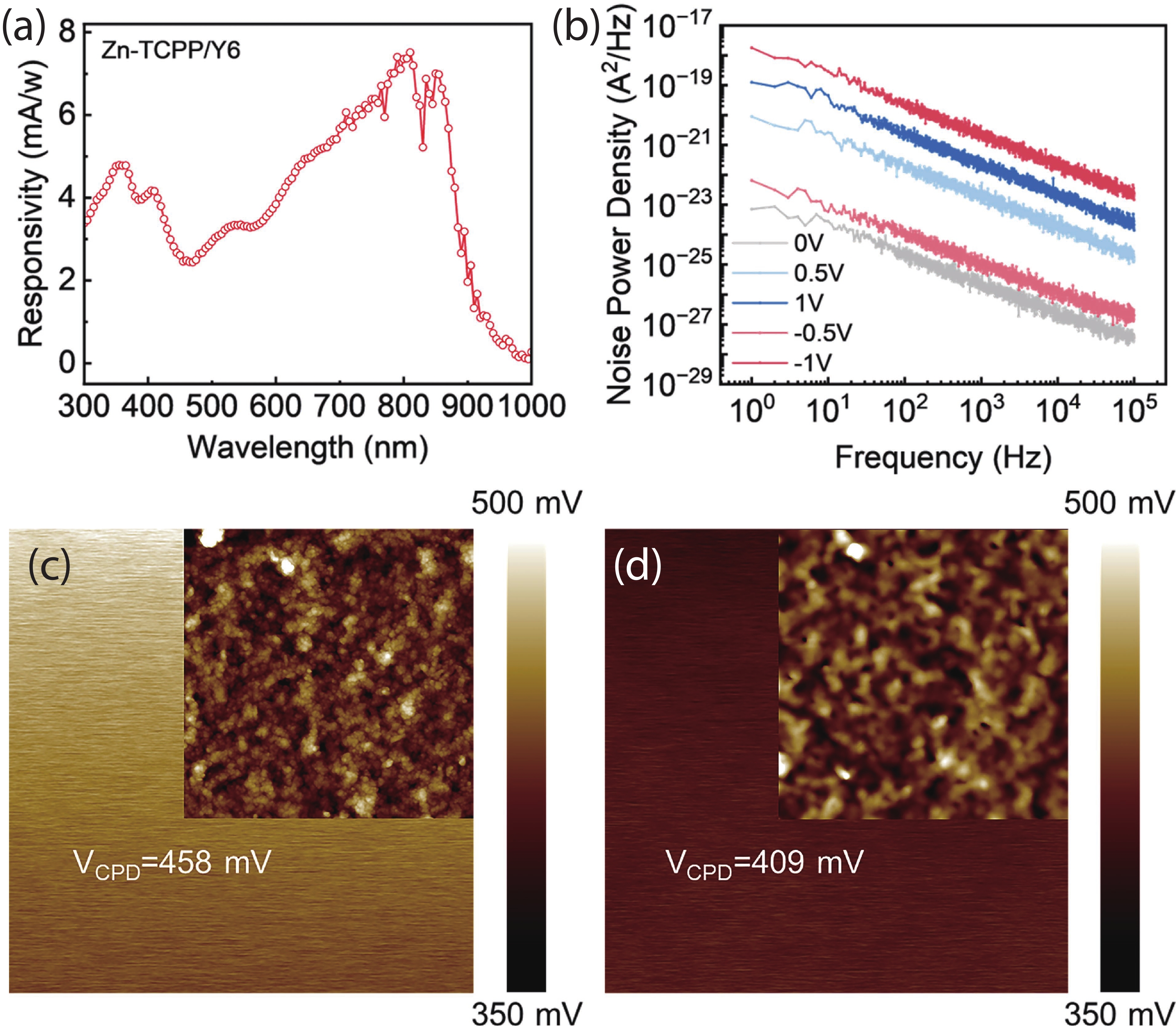 Broadband, low-power, and solution-processable organic photodetectors are essential for next-generation optoelectronic sensing. Two-dimensional conductive metal−organic frameworks (2D cMOFs) based on zinc tetracarboxyphenyl porphyrin (Zn-TCPP) offer strong light absorption and efficient charge transport, yet their photoresponse remains confined to the ultraviolet−visible (UV−Vis) region. To address this limitation, this study develops a solution-compatible strategy for constructing a well-defined MOF/organic semiconductor type-Ⅱ heterojunction by spin-coating a high-performance Y6 layer onto Zn-TCPP films. The resulting heterostructure provides complementary spectral absorption, promotes efficient exciton dissociation, and enables directional charge carrier transport, thereby achieving self-powered broadband photodetection spanning the ultraviolet to near-infrared (UV−NIR) range. The device demonstrates outstanding performance, including an ultra-low dark current (down to 3.40 × 10−13 A), high responsivity, and an ultrafast transient response with a rise time of 4.4 ms. This work establishes a generalizable approach for engineering high-efficiency MOF/organic semiconductor heterojunctions and offers a promising platform for low-cost, broadband, and self-powered photodetectors for biomedical and advanced sensing applications.