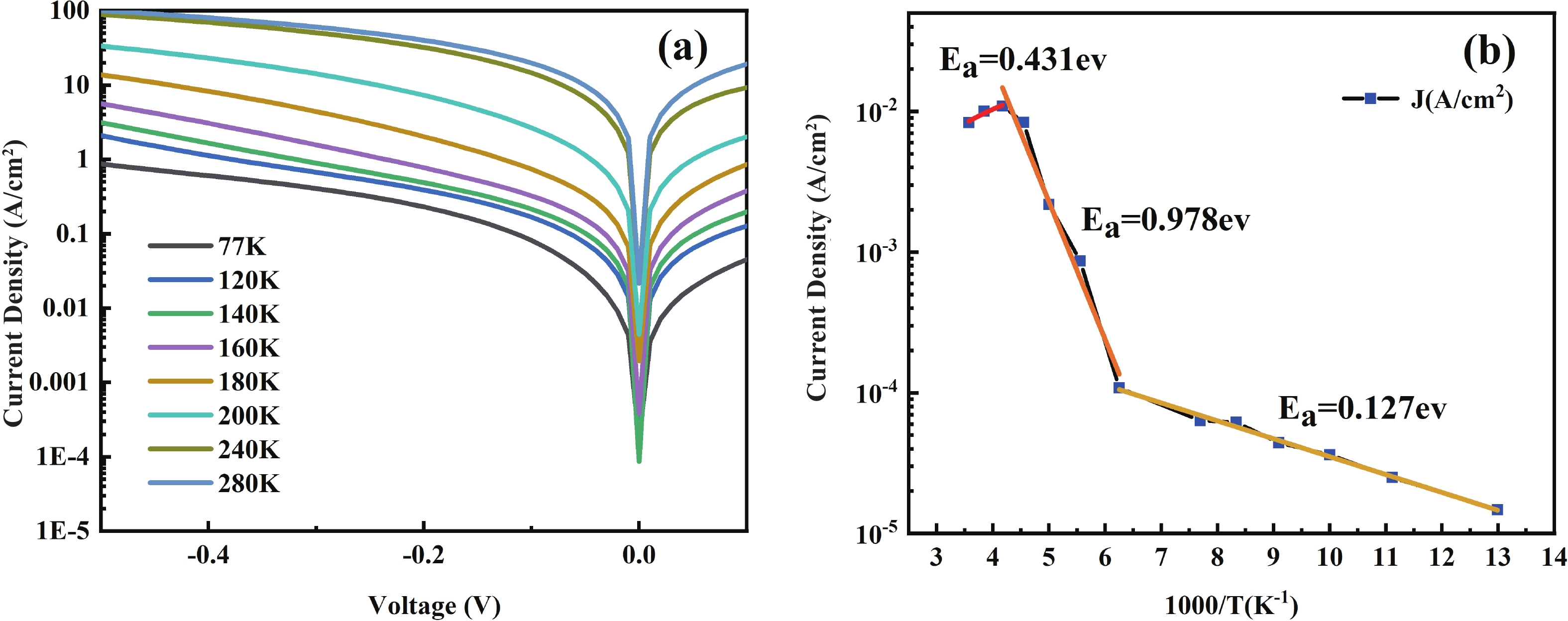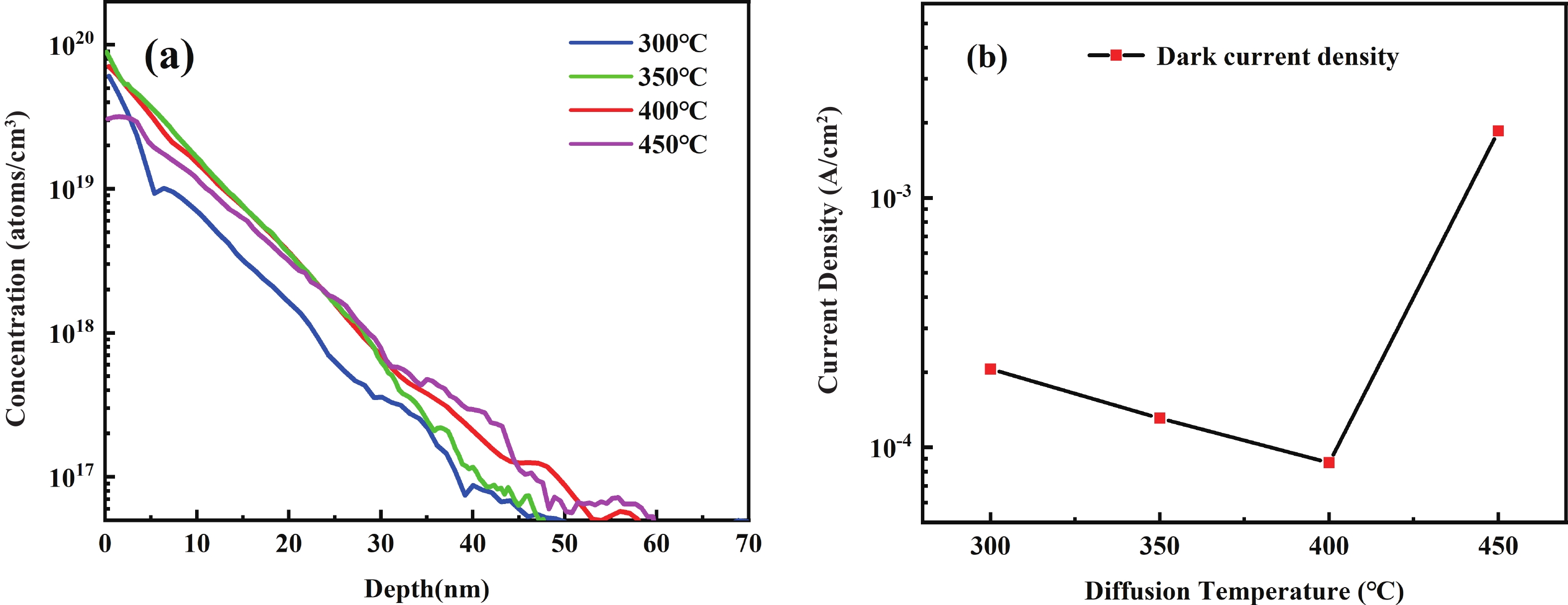 [1] Rogalski A. Progress in focal plane array technologies. Prog Quantum Electron, 2012, 36(2/3), 342 doi: 10.1016/j.pquantelec.2012.07.001[2] Dong C Y, An X, Wu Z C, et al. Multilayered PdTe2/thin Si heterostructures as self-powered flexible photodetectors with heart rate monitoring ability. J Semicond, 2023, 44(11), 112001 doi: 10.1088/1674-4926/44/11/112001[3] Rogalski A. HgCdTe infrared detector material: History, status and outlook. Rep Prog Phys, 2005, 68(10), 2267 doi: 10.1088/0034-4885/68/10/R01[4] Si J. Novel InSb-based infrared detector materials. Infrared and Laser engineering, 2022, 51(1), 20210811[5] Sai-Halasz G A, Tsu R, Esaki L. A new semiconductor superlattice. Appl Phys Lett, 1977, 30(12), 651 doi: 10.1063/1.89273[6] Smith D L, Mailhiot C. Proposal for strained type II superlattice infrared detectors. J Appl Phys, 1987, 62(6), 2545 doi: 10.1063/1.339468[7] Nguyen B M, Razeghi M, Nathan V, et al. Type-II M structure photodiodes: an alternative material design for mid-wave to long wavelength infrared regimes. Quantum Sensing and Nanophotonic Devices IV, 2007, 91(9), 091112 doi: 10.1117/12.7115888[8] Grein C H, Young P M, Flatté M E, et al. Long wavelength InAs/InGaSb infrared detectors: Optimization of carrier lifetimes. J Appl Phys, 1995, 78(12), 7143 doi: 10.1063/1.360422[9] Rogalski A. Material considerations for third generation infrared photon detectors. Infrared Phys Technol, 2007, 50(2/3), 240 doi: 10.1016/j.infrared.2006.10.015[10] Delaunay P Y, Hood A, Nguyen B M, et al. Passivation of type-II InAs∕GaSb double heterostructure. Appl Phys Lett, 2007, 91(9), 091112 doi: 10.1063/1.2776353[11] Zhang Z, Yates J T Jr. Band bending in semiconductors: Chemical and physical consequences at surfaces and interfaces. Chem Rev, 2012, 112(10), 5520 doi: 10.1021/cr3000626[12] Plis E A. InAs/GaSb type-II superlattice detectors. Adv Electron, 2014, 2014, 246769 doi: 10.1155/2014/246769[13] Marozas B T, Hughes W D, Du X, et al. Surface dark current mechanisms in III-V infrared photodetectors. Opt Mater Express, 2018, 8(6), 1419 doi: 10.1364/OME.8.001419[14] Salihoglu O, Muti A, Kutluer K, et al. Passivation of type II InAs/GaSb superlattice photodetectors with atomic layer deposited Al2O3. Infrared Technology and Applications XXXVIII. Baltimore, 2012, 83530Z doi: 10.1117/12.920406[15] Hou X Y, Wen L J, He F Y, et al. Embedded high-quality ternary GaAs1–xSbx quantum dots in GaAs nanowires by molecular-beam epitaxy. J Semicond, 2024, 45(8), 082101 doi: 10.1088/1674-4926/24030038[16] Kinch M A. The rationale for ultra-small pitch IR systems. Infrared Technology and Applications XL. Baltimore, 2014, 907032-1 doi: 10.1117/12.2051335[17] Cui Y Z, Hao H Y, Zhang S H, et al. High-performance GaSb planar PN junction detector. J Semicond, 2024, 45(9), 092403 doi: 10.1088/1674-4926/24040024[18] Musca C A, Antoszewski J, Dell J M, et al. Planar p-on-n HgCdTe heterojunction mid-wavelength infrared photodiodes formed using plasma-induced junction isolation. J Electron Mater, 2003, 32(7), 622 doi: 10.1007/s11664-003-0042-1[19] Iwamura Y, Watanabe N. InAs planar diode fabricated by Zn diffusion. Jpn J Appl Phys, 2000, 39(10R), 5740 doi: 10.1143/JJAP.39.5740[20] Pitts O J, Hisko M, Benyon W, et al. Optimization of MOCVD-diffused p-InP for planar avalanche photodiodes. J Cryst Growth, 2014, 393, 85 doi: 10.1016/j.jcrysgro.2013.09.053[21] Wang T T, Xiong M, Zhao Y C, et al. Planar mid-infrared InAsSb photodetector grown on GaAs substrates by MOCVD. Appl Phys Express, 2019, 12(12), 122009 doi: 10.7567/1882-0786/ab507c[22] Dehzangi A, Wu D H, McClintock R, et al. Demonstration of planar type-II superlattice-based photodetectors using silicon ion-implantation. Photonics, 2020, 7(3), 68 doi: 10.3390/photonics7030068[23] Wu D H, Dehzangi A, Li J K, et al. High performance Zn-diffused planar mid-wavelength infrared type-II InAs/InAs1−xSbx superlattice photodetector by MOCVD. Appl Phys Lett, 2020, 116(16), 161108 doi: 10.1063/5.0005326[24] Nguyen B M, Hoffman D, Delaunay P Y, et al. Dark current suppression in type II InAs/GaSb superlattice long wavelength infrared photodiodes with M-structure barrier. Appl Phys Lett, 2007, 91(16), 163511 doi: 10.1063/1.2800808[25] Simcock M N. Zinc diffusion in GaSb for thermophotovoltaic cell applications. Thermophotovoltaic Generation of Electricity: Sixth Conference on Thermophotovoltaic Generation of Electricity: TPV6, 2004, 303 doi: 10.1063/1.1841907[26] Hao H Y, Wang G W, Xiang W, et al. Fabrication of type-II InAs/GaSb superlattice long-wavelength infrared focal plane arrays. Infrared Phys Technol, 2015, 72, 276 doi: 10.1016/j.infrared.2015.07.025[27] Mao J X, Zhuang J S. Calculation of factor g in measurement of parameters of IRFPA detectors. Infrared, 2008, 048[28] Zhou X C, Li D S, Huang J L, et al. Mid-wavelength type II InAs/GaSb superlattice infrared focal plane arrays. Infrared Phys Technol, 2016, 78, 263 doi: 10.1016/j.infrared.2016.08.014[29] Rehm R, Walther M, Schmitz J, et al. InAs/GaSb superlattice focal plane arrays for high-resolution thermal imaging. Opto Electron Rev, 2006, 14(1), 19 doi: 10.2478/s11772-006-0003-3[30] Bogdanov S. Planar engineering for dark current suppression in type-II superlattice infrared photodiodes. Northwestern University, United States-Illinois, 2014, 172 -