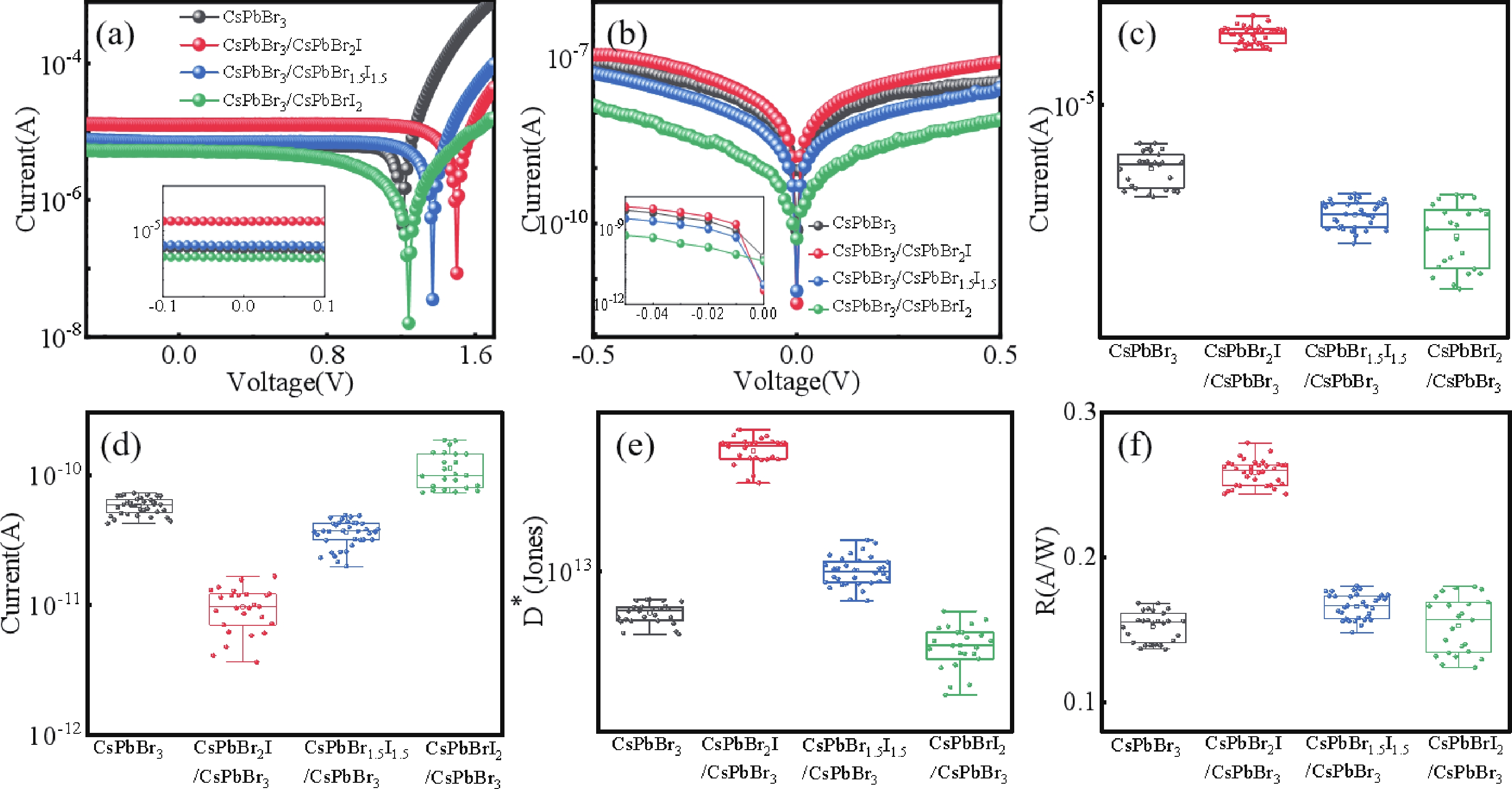 Research on heterojunction semiconductor photodetectors based on CsPbBr3 QDs/CsPbBrxI3–x QDs