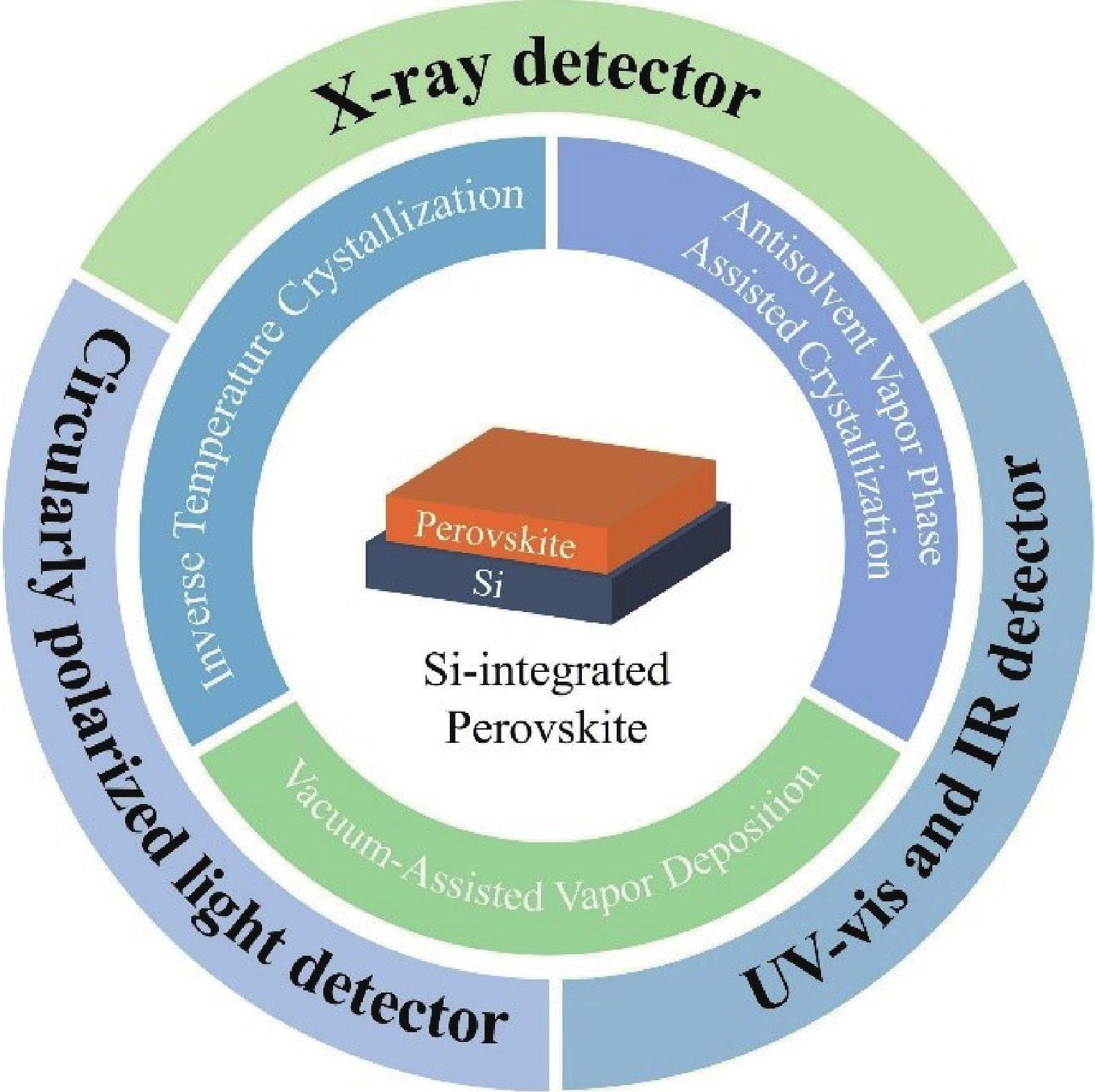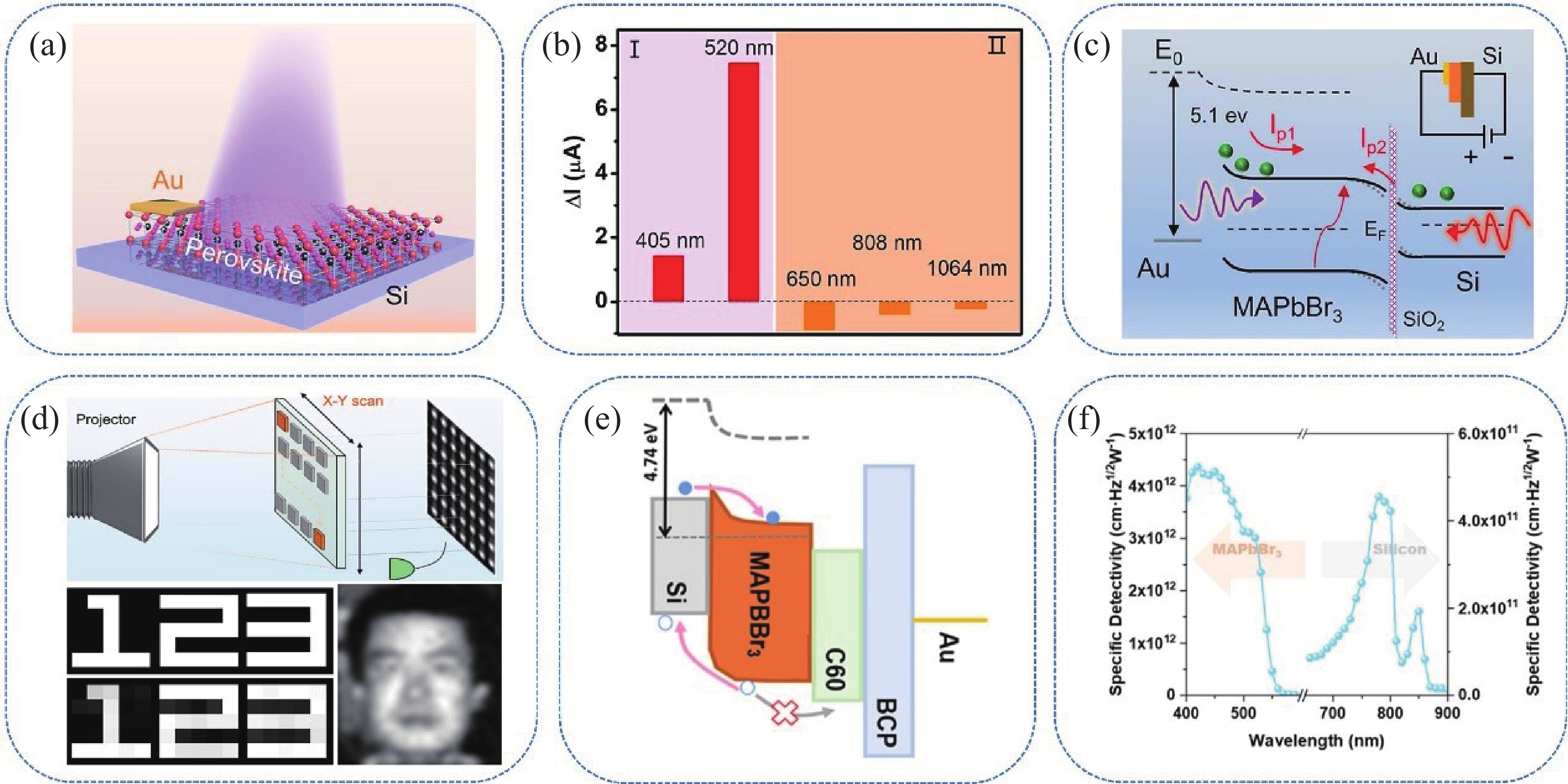 [1] Dou L T, Yang Y M, You J B, et al. Solution-processed hybrid perovskite photodetectors with high detectivity. Nat Commun, 2014, 5, 5404 doi: 10.1038/ncomms6404[2] Kim C O, Kim S, Shin D H, et al. High photoresponsivity in an all-graphene p-n vertical junction photodetector. Nat Commun, 2014, 5, 3249 doi: 10.1038/ncomms4249[3] Guan Y S, Qiao J, Liang Y Y, et al. A high mobility air-stable n-type organic small molecule semiconductor with high UV-visible-to-NIR photoresponse. Light Sci Appl, 2022, 11(1), 236 doi: 10.1038/s41377-022-00936-z[4] Tsarev S, Proniakova D, Liu X Q, et al. Vertically stacked monolithic perovskite colour photodetectors. Nature, 2025, 642(8068), 592 doi: 10.1038/s41586-025-09062-3[5] Wang K, Yang D, Wu C C, et al. Recent progress in fundamental understanding of halide perovskite semiconductors. Prog Mater Sci, 2019, 106, 100580 doi: 10.1016/j.pmatsci.2019.100580[6] Ebrahimkhani L, Nematollahi J, Mirkhani V, et al. Investigation of structural, electronic, and optical properties of halide perovskites with different amide cations: A first-principles approach. Mater Today Commun, 2024, 40, 110008 doi: 10.1016/j.mtcomm.2024.110008[7] Nketia-Yawson V, Nketia-Yawson B, Jo J W. Functional impact of gate dielectrics in emerging metal halide perovskite field-effect transistors. Mater Today Phys, 2024, 45, 101475 doi: 10.1016/j.mtphys.2024.101475[8] Zhang H C, Fu X, Tang Y, et al. Phase segregation due to ion migration in all-inorganic mixed-halide perovskite nanocrystals. Nat Commun, 2019, 10(1), 1088 doi: 10.1038/s41467-019-09047-7[9] Li Y H, Xie H B, Lim E L, et al. Recent progress of critical interface engineering for highly efficient and stable perovskite solar cells. Adv Energy Mater, 2022, 12, 2102730 doi: 10.1002/aenm.202102730[10] Jang C W, Shin D H, Choi S H. Performance enhancement of perovskite/porous-Si photodetectors by reducing the dark current with concomitant use of graphene quantum dots in the active layer and bathocuproine on the back surface. J Alloys Compd, 2023, 948, 169716 doi: 10.1016/j.jallcom.2023.169716[11] Zhao Y P, Yavuz I, Wang M H, et al. Suppressing ion migration in metal halide perovskite via interstitial doping with a trace amount of multivalent cations. Nat Mater, 2022, 21(12), 1396 doi: 10.1038/s41563-022-01390-3[12] Li R M, Peng J L, Xu Y L, et al. Pseudohalide additives enhanced perovskite photodetectors. Adv Opt Mater, 2021, 9(2), 2001587 doi: 10.1002/adom.202001587[13] Fang Y J, Dong Q F, Shao Y C, et al. Highly narrowband perovskite single-crystal photodetectors enabled by surface-charge recombination. Nat Photonics, 2015, 9, 679 doi: 10.1038/nphoton.2015.156[14] Liu X, Ren J, Chen Y A, et al. Recent progress in single crystal perovskite X-ray detectors. Sci China Inf Sci, 2024, 67(3), 131401 doi: 10.1007/s11432-023-3856-4[15] Mauthe S, Baumgartner Y, Sousa M, et al. High-speed III-V nanowire photodetector monolithically integrated on Si. Nat Commun, 2020, 11(1), 4565 doi: 10.1038/s41467-020-18374-z[16] Wei W, Zhang Y, Xu Q, et al. Monolithic integration of hybrid perovskite single crystals with heterogenous substrate for highly sensitive X-ray imaging. Nat Photonics, 2017, 11, 315 doi: 10.1038/nphoton.2017.43[17] Geng X S, Wang F W, Tian H, et al. Ultrafast photodetector by integrating perovskite directly on silicon wafer. ACS Nano, 2020, 14(3), 2860 doi: 10.1021/acsnano.9b06345[18] Zhang X Y, Weng W, Li L N, et al. Heterogeneous integration of chiral lead-chloride perovskite crystals with Si wafer for boosted circularly polarized light detection in solar-blind ultraviolet region. Small, 2021, 17(40), e2102884 doi: 10.1002/smll.202102884[19] Yang Z, Wang H, Guo L J, et al. A self-powered photodetector based on MAPbI3 single-crystal film/n-Si heterojunction with broadband response enhanced by pyro-phototronic and piezo-phototronic effects. Small, 2021, 17(32), e2101572 doi: 10.1002/smll.202101572[20] Zeng L H, Lin S H, Lou Z H, et al. Ultrafast and sensitive photodetector based on a PtSe2/silicon nanowire array heterojunction with a multiband spectral response from 200 to 1550 nm. NPG Asia Mater, 2018, 10, 352 doi: 10.1038/s41427-018-0035-4[21] Liu Z L, Xiong Z J, Yang S F, et al. Strained heterojunction enables high-performance, fully textured perovskite/silicon tandem solar cells. Joule, 2024, 8(10), 2834 doi: 10.1016/j.joule.2024.06.015[22] Zhou Y, Zhao L, Ni Z Y, et al. Heterojunction structures for reduced noise in large-area and sensitive perovskite X-ray detectors. Sci Adv, 2021, 7(36), eabg6716 doi: 10.1126/sciadv.abg6716[23] Qu W, Weng S K, Zhang L P, et al. Self-powered ultraviolet-visible-near infrared perovskite/silicon hybrid photodetectors based on a novel Si/SnO2/MAPbI3/MoO3 heterostructure. Appl Phys Express, 2020, 13(12), 121001 doi: 10.35848/1882-0786/abc5fa[24] Tian S K, Sui F, He K, et al. Co-axial silicon/perovskite heterojunction arrays for high-performance direct-conversion pixelated X-ray detectors. Nano Energy, 2020, 78, 105335 doi: 10.1016/j.nanoen.2020.105335[25] Li Z N, Huang S, Chen Y, et al. Vapor-deposited amino coupling of hybrid perovskite single crystals and silicon wafers toward highly efficient multiwavelength photodetection. ACS Appl Mater Interfaces, 2022, 14(46), 52476 doi: 10.1021/acsami.2c14466[26] Li Z N, Chen Y, Zhang C, et al. Phenyl-terminated coupling interface enabled highly efficient and stable multiwavelength perovskite single crystal/silicon integrated photodetector. ACS Appl Mater Interfaces, 2023, 15(13), 17377 doi: 10.1021/acsami.3c01008[27] Li J Y, Yang Y Z, Ye Z L, et al. Controlled high-quality perovskite single crystals growth for radiation detection: Nucleation and growth kinetics of antisolvent vapor-assisted crystallization. J Mater Sci Technol, 2025, 232, 276 doi: 10.1016/j.jmst.2025.02.019[28] Liu Y C, Zhang Y X, Yang Z, et al. Thinness- and shape-controlled growth for ultrathin single-crystalline perovskite wafers for mass production of superior photoelectronic devices. A