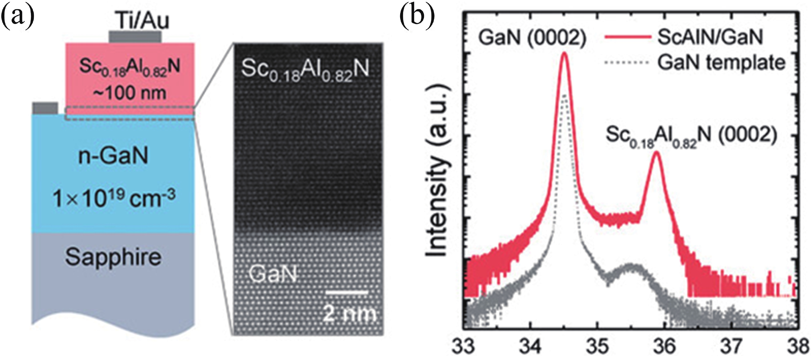 [1] Wang W B, Mayrhofer P M, He X L, et al. High performance AlScN thin film based surface acoustic wave devices with large electromechanical coupling coefficient. Appl Phys Lett, 2014, 105(13): 133502 doi: 10.1063/1.4896853[2] Su J X, Niekiel F, Fichtner S, et al. AlScN-based MEMS magnetoelectric sensor. Appl Phys Lett, 2020, 117(13): 132903 doi: 10.1063/5.0022636[3] Kim K H, Song S, Kim B, et al. Tuning polarity in WSe2/AlScN FeFETs via contact engineering. ACS Nano, 2024, 18(5): 4180 doi: 10.1021/acsnano.3c09279[4] Zywitzki O, Modes T, Barth S, et al. Effect of scandium content on structure and piezoelectric properties of AlScN films deposited by reactive pulse magnetron sputtering. Surf & Coat Techol, 2017, 309(1): 417 doi: 10.1016/j.surfcoat.2016.11.083[5] Esteves G, Young T R, Tang Z C, et al. Al0.68Sc0.32N Lamb wave resonators with electromechanical coupling coefficients near 10.28%. Appl Phys Lett, 2021, 118(17): 171902 doi: 10.1063/5.0047647[6] Kanouni F, Arab F, Amara S, et al. The piezoelectricity of AlScN thin films under high-pressure regime. Phys Solid State, 2023, 65(2): 111 doi: 10.1134/S1063783423600309[7] Ranu, Uthra B, Sinha R, et al. CMOS compatible pyroelectric materials for infrared detectors. Mater Sci Semicond Proc, 2022, 140: 106375 doi: 10.1016/j.mssp.2021.106375[8] Döring P, Krause S, Friesicke C, et al. Theoretical limits of the matching bandwidth and output power of AlScN-based HEMTs. IEEE Trans Electron Devices, 2024, 71(3): 1670 doi: 10.1109/TED.2023.3334224[9] Liu J Y, Ma J N, Du X, et al. Tailoring p-type conductivity of aluminum nitride via transition metal and fluorine doping. J Alloys Compd, 2021, 862: 158017 doi: 10.1016/j.jallcom.2020.158017[10] Zhang H, Wang Y, Wang L H, et al. Process control monitor (PCM) for simultaneous determination of the piezoelectric coefficients d31 and d33 of AlN and AlScN Thin Films. Micromachines, 2022, 13(4): 581 doi: 10.3390/mi13040581[11] Su J X, Fichtner S, Ghori M Z, et al. Growth of highly c-axis oriented AlScN films on commercial substrates. Micromachines, 2022, 13(5): 783 doi: 10.3390/mi13050783[12] Sui W, Wang H R, Lee J, et al. AlScN-on-SiC thin film micromachined resonant transducers operating in high-temperature environment up to 600 °C. Adv Funct Mater, 2022, 32(34): 2202204 doi: 10.1002/adfm.202202204[13] Casamento J, Nomoto K, Nguyen T S, et al. FerroHEMTs: High-current and high-speed all-epitaxial AlScN/GaN ferroelectric transistors. 2022 International Electron Devices Meeting (IEDM), 2022: 11 doi: 10.1109/IEDM45625.2022.10019485[14] Clement M, Felmetsger V, Mirea T, et al. Reactive sputtering of AlScN thin films with variable Sc content on 200 mm wafers. 2018 European Frequency and Time Forum (EFTF). Turin, Italy. IEEE, 2018: 13 doi: 10.1109/EFTF.2018.8408987[15] Shao S, Luo Z F, Lu Y, et al. High quality co-sputtering AlScN thin films for piezoelectric Lamb-wave resonators. J Microelectromech Syst, 2022, 31(3): 328 doi: 10.1109/JMEMS.2022.3161055[16] Luo Z, Shao S, Wu T. Characterization of AlN and AlScN film ICP etching for micro/nano fabrication. Microelectron Eng, 2021, 242: 111530 doi: 10.1016/j.mee.2021.111530[17] Wang L, Chen S M, Zhang J Y, et al. High performance 33.7 GHz surface acoustic wave nanotransducers based on AlScN/diamond/Si layered structures. Appl Phys Lett, 2018, 113(9): 093503 doi: 10.1063/1.5046113[18] Liu X W, Wang D X, Kim K H, et al. Post-CMOS compatible aluminum scandium nitride/2D channel ferroelectric field-effect-transistor memory. Nano Lett, 2021, 21(9): 3753 doi: 10.1021/acs.nanolett.0c05051[19] Kim K H, Oh S, Fiagbenu M M A, et al. Scalable CMOS back-end-of-line-compatible AlScN/two-dimensional channel ferroelectric field-effect transistors. Nat Nanotechnol, 2023, 18(9): 1044 doi: 10.1038/s41565-023-01399-y[20] Shao S, Luo Z F, Wu T. High figure-of-merit Lamb wave resonators based on Al0.7Sc0.3N thin film. IEEE Electron Device Lett, 2021, 42(9): 1378 doi: 10.1109/LED.2021.3100036[21] Bette S, Fichtner S, Bröker S, et al. Infrared-laser based characterization of the pyroelectricity in AlScN thin-films. Thin Solid Films, 2019, 692(31): 137623 doi: 10.1016/j.tsf.2019.137623[22] Hussein H M, Ben A F, Venditti A, et al. Parametric frequency comb generator based AlScN MEMS IR detector for low-power and high-performance applications. Image Sensing Technologies: Materials, Devices, Systems, and Applications XI, 2024: 13030 doi: 10.1117/12.3014181[23] Doko S, Matsui N, Irisawa T, et al. Thickness dependence of ferroelectricity for thin (Al0.9Sc0.1)N-based FeRAM. IEEE International Meeting for Furture of Electron Devices, Kansai (IMFEDK), 2024: 1 doi: 10.1109/IMFEDK64776.2024.10814248[24] Dai X H, Hua Q L, Jiang C S, et al. Artificial synapse based on a tri-layer AlN/AlScN/AlN stacked memristor for neuromorphic computing. Nano Energy, 2024, 124: 109473 doi: 10.1016/j.nanoen.2024.109473[25] Tahhan M B, Logan J A, Hardy M T, et al. Passivation schemes for ScAlN-barrier mm-wave high electron mobility transistors. IEEE Trans Electron Devices, 2022, 69(3): 962 doi: 10.1109/TED.2021.3140016[26] Yang J Y, Oh S Y, Yeom M J, et al. Pulsed E-/D-mode switchable GaN HEMTs with a ferroelectric AlScN gate dielectric. IEEE Electron Device Lett, 2023, 44(8): 1260 doi: 10.1109/LED.2023.3287913[27] Liu Z, Shao Z, Cao Y, et al. Strain engineering boosts piezo-/ferroelectricity in AlScN alloy: insights from first-principles calculations. Chem Mater, 2025, 37(15): 6026 doi: 10.1021/acs.chemmater.5c01383[28] Ruiz E, Alvarez S, Alemany P. Electronic structure and properties of AlN. Phys Rev B Condens Matter, 1994, 49(11): 7115 doi: 10.1103/PhysRevB.49.7115[29] Tsai S L, Hoshii T, Wakabayashi H, et al. Room-temperature deposition of a poling-free ferroelectric AlScN film by reactive sputtering. Appl Phys Lett, 2021, 118(8): 082902 doi: 10.1063/5.0035335[30] Yang H Q, Sun J, Wang H J, et al. A review of oriented wurtzite-structure aluminum nitride films. J Alloys Compd, 2024, 989(1): 174330 doi: 10.101