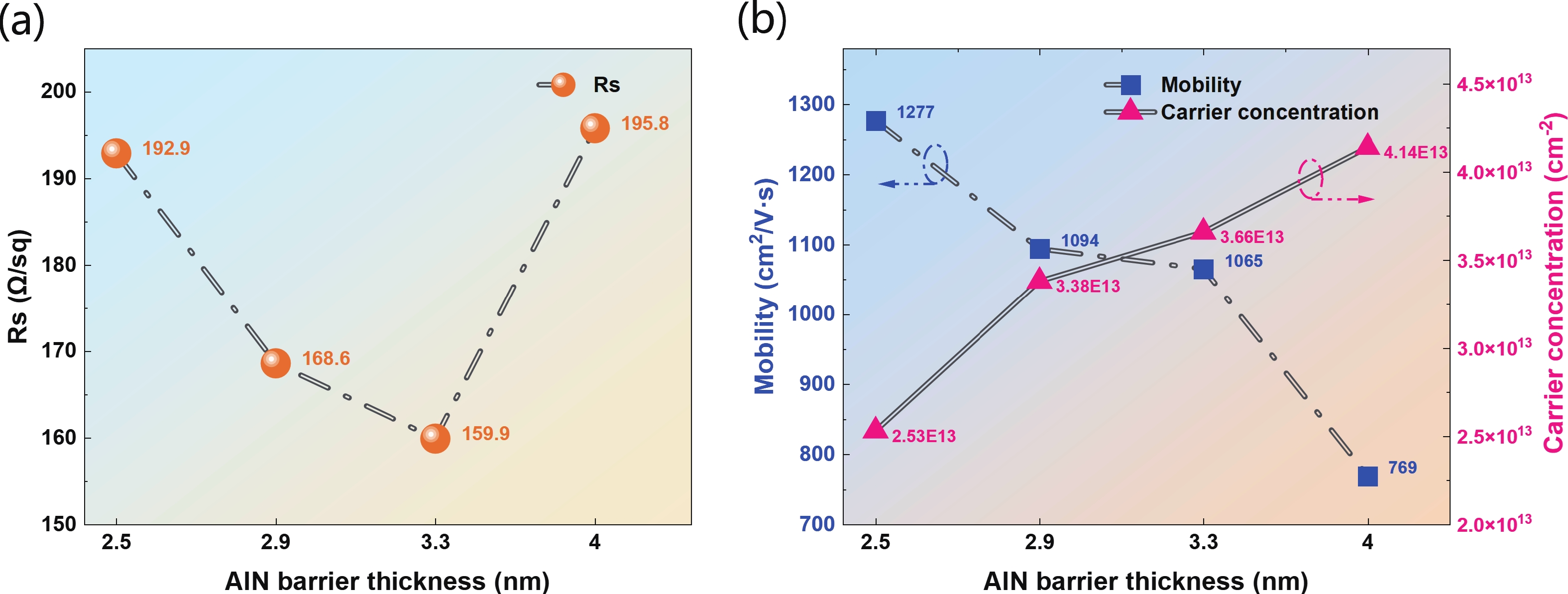 L Liu, H X Jia, J J Pan, H Ying, Y Y Sun, L Pan, B Zhao, J Liu, and S Z Lu, Extremely low sheet resistance of ultra-thin AlN barrier HEMTs by plasma-assisted molecular beam epitaxy[J]. J. Semicond., 2026, accepted doi: 10.1088/1674-4926/25110027