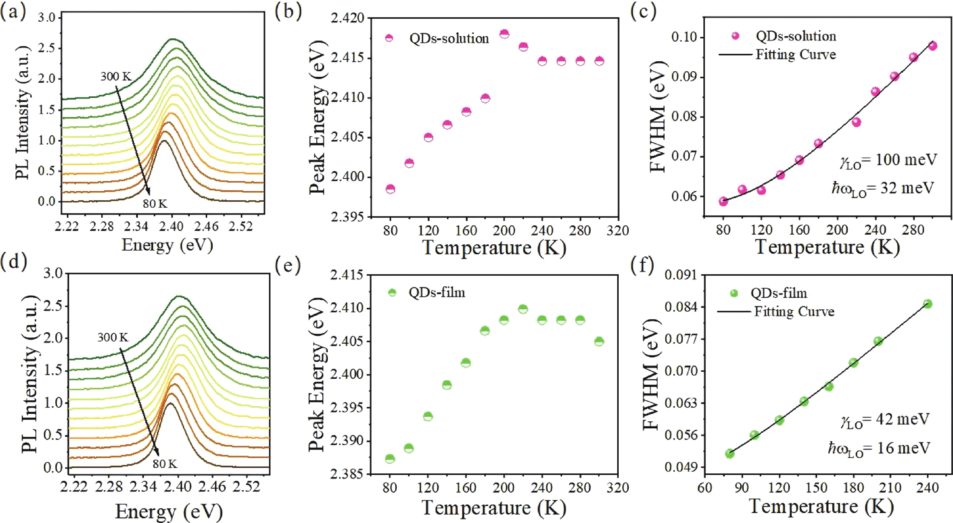 [1] Rainò G, Yazdani N, Boehme S C, et al. Ultra-narrow room-temperature emission from single CsPbBr3 perovskite quantum dots. Nat Commun, 2022, 13: 2587 doi: 10.1038/s41467-022-30016-0[2] Liu Z K, Ma W L. Preface to special topic on quantum dot semiconductor optoelectronic materials, devices, and characterization. J Semicond, 2025, 46(4): 040101 doi: 10.1088/1674-4926/25030801[3] Hanifi D A, Bronstein N D, Koscher B A, et al. Redefining near-unity luminescence in quantum dots with photothermal threshold quantum yield. Science, 2019, 363(6432): 1199 doi: 10.1126/science.aat3803[4] Liu X K, Xu W D, Bai S, et al. Metal halide perovskites for light-emitting diodes. Nat Mater, 2021, 20(1): 10 doi: 10.1038/s41563-020-0784-7[5] Stranks S D, Snaith H J. Metal-halide perovskites for photovoltaic and light-emitting devices. Nat Nanotechnol, 2015, 10(5): 391 doi: 10.1038/nnano.2015.90[6] Li H H, Wang Y, Liu Z S, et al. Hybrid-dimensional heterostructure enables efficient near-infrared perovskite quantum dot light-emitting diodes. ACS Nano, 2025, 19(28): 25930 doi: 10.1021/acsnano.5c05939[7] Liu W, Xie H D, Guo X L, et al. Luminescence, stability, and applications of CsPbBr3 quantum dot/polymethyl methacrylate composites prepared by a solvent- and ligand-free ball milling method. Opt Mater, 2023, 136: 113398 doi: 10.1016/j.optmat.2022.113398[8] Liu Z S, Wang Y, Zhao F, et al. Liquid bidentate ligand for full ligand coverage towards efficient near-infrared perovskite quantum dot LEDs. Light Sci Appl, 2025, 14: 35 doi: 10.1038/s41377-024-01704-x[9] Boles M A, Ling D S, Hyeon T, et al. The surface science of nanocrystals. Nat Mater, 2016, 15(2): 141 doi: 10.1038/nmat4526[10] Yuan M J, Liu M X, Sargent E H. Colloidal quantum dot solids for solution-processed solar cells. Nat Energy, 2016, 1: 16016 doi: 10.1038/nenergy.2016.16[11] Wang Y K, Wan H Y, Teale S, et al. Long-range order enabled stability in quantum dot light-emitting diodes. Nature, 2024, 629(8012): 586 doi: 10.1038/s41586-024-07363-7[12] Gu X, Fei W L, Sun B Q, et al. Wide-bandgap and heavy-metal-free quantum dots for blue light-emitting diodes. J Semicond, 2025, 46(4): 041101 doi: 10.1088/1674-4926/24100016[13] Jiang Y Z, Sun C J, Xu J, et al. Synthesis-on-substrate of quantum dot solids. Nature, 2022, 612(7941): 679 doi: 10.1038/s41586-022-05486-3[14] Li S, Yin W X, Zheng W T, et al. Size matters: Quantum confinement-driven dynamics in CsPbI3 quantum dot light-emitting diodes. J Semicond, 2025, 46(4): 042103 doi: 10.1088/1674-4926/24120018[15] Wei K, Xu Z J, Chen R Z, et al. Temperature-dependent excitonic photoluminescence excited by two-photon absorption in perovskite CsPbBr3 quantum dots. Opt Lett, 2016, 41(16): 3821 doi: 10.1364/OL.41.003821[16] Bonn M, Miyata K, Hendry E, et al. Role of dielectric drag in polaron mobility in lead halide perovskites. ACS Energy Lett, 2017, 2(11): 2555 doi: 10.1021/acsenergylett.7b00717[17] Reshchikov M A. Mechanisms of thermal quenching of defect-related luminescence in semiconductors. Phys Status Solidi A, 2021, 218: 2000101 doi: 10.1002/pssa.202000101[18] Li J C, Liu S L, You W W, et al. Temperature-insensitive persistent luminescence in the highly emissive Cs2CdCl4 ruddlesden-popper perovskite for advanced multifunctional applications. Chem Eng J, 2025, 514: 163346 doi: 10.1016/j.cej.2025.163346[19] Mączka M, Stefańska D, Zaręba J K, et al. Temperature-dependent luminescence and second-harmonic generation of perovskite-type manganese and cadmium dicyanamide frameworks templated by tetrapropylammonium cations. J Alloys Compd, 2020, 821: 153464 doi: 10.1016/j.jallcom.2019.153464[20] Handa T, Aharen T, Wakamiya A, et al. Radiative recombination and electron-phonon coupling in lead-free CH3NH3SnI3 perovskite thin films. Phys Rev Materials, 2018, 2(7): 075402 doi: 10.1103/PhysRevMaterials.2.075402[21] Khvichia M, Zeitz D C, Chou K C, et al. Temperature dependence of photoinduced carrier spin relaxation dynamics in CsPbBr3 and MAPbBr3 perovskite quantum dots. J Phys Chem Lett, 2025, 16(23): 5681 doi: 10.1021/acs.jpclett.5c01192[22] Hu L, Zhao W R, Duan W J, et al. Temperature-dependent optical properties of perovskite quantum dots with mixed-A-cations. Micromachines, 2022, 13(3): 457 doi: 10.3390/mi13030457[23] Li X Y, Yu Y L, Hong J Q, et al. Optical temperature sensing of Eu3+-doped oxyhalide glasses containing CsPbBr3 perovskite quantum dots. J Lumin, 2020, 219: 116897 doi: 10.1016/j.jlumin.2019.116897[24] Mei X Y, Wang G L, Qiu J M, et al. Surface stress engineering of CsPbI3 perovskite quantum dots for efficient solar cells. Small, 2025, 21(22): 2500007 doi: 10.1002/smll.202500007[25] Khan Q, Hussain S, Saeed F, et al. Electrically modulated near-field energy transfer between quantum dots and perovskite nanocrystals. Opt Laser Technol, 2025, 185: 112599 doi: 10.1016/j.optlastec.2025.112599[26] Liu J N, Yang X, Xue H P, et al. Surface coupling in Bi2Se3 ultrathin films by screened Coulomb interaction. Nat Commun, 2023, 14: 4424 doi: 10.1038/s41467-023-40035-0[27] Jiang X F, Gu J Z, Zheng S X, et al. Mixed-solvent crystallization expands the chemical space of 2D perovskites and enables phonon-limited exciton transport. J Am Chem Soc, 2025, 147(35): 32287 doi: 10.1021/jacs.5c13393[28] Shahivandi H. Understanding thermal effects on band gap and absorption in MAPbI3 perovskite solar cells. Solid State Sci, 2025, 168: 108054 doi: 10.1016/j.solidstatesciences.2025.108054[29] Poltavtsev S V, Stroganov B V. Experimental investigation of the oscillator strength of the exciton transition in GaAs single quantum wells. Phys Solid State, 2010, 52(9): 1899 doi: 10.1134/S1063783410090180[30] Cho E, Jo A, Kim T G, et al. Exploring the optical characteristics influenced by size and surface defects in AgInS2 quantum dots: A theoretical study with a simple ligand model. Appl Surf Sci, 2025, 686: 162142 doi: 10.1016/j.apsusc.2024.162142[31] Wright A D, Verdi C, Milot R L, et al. Electron–phonon coupling in hybrid 