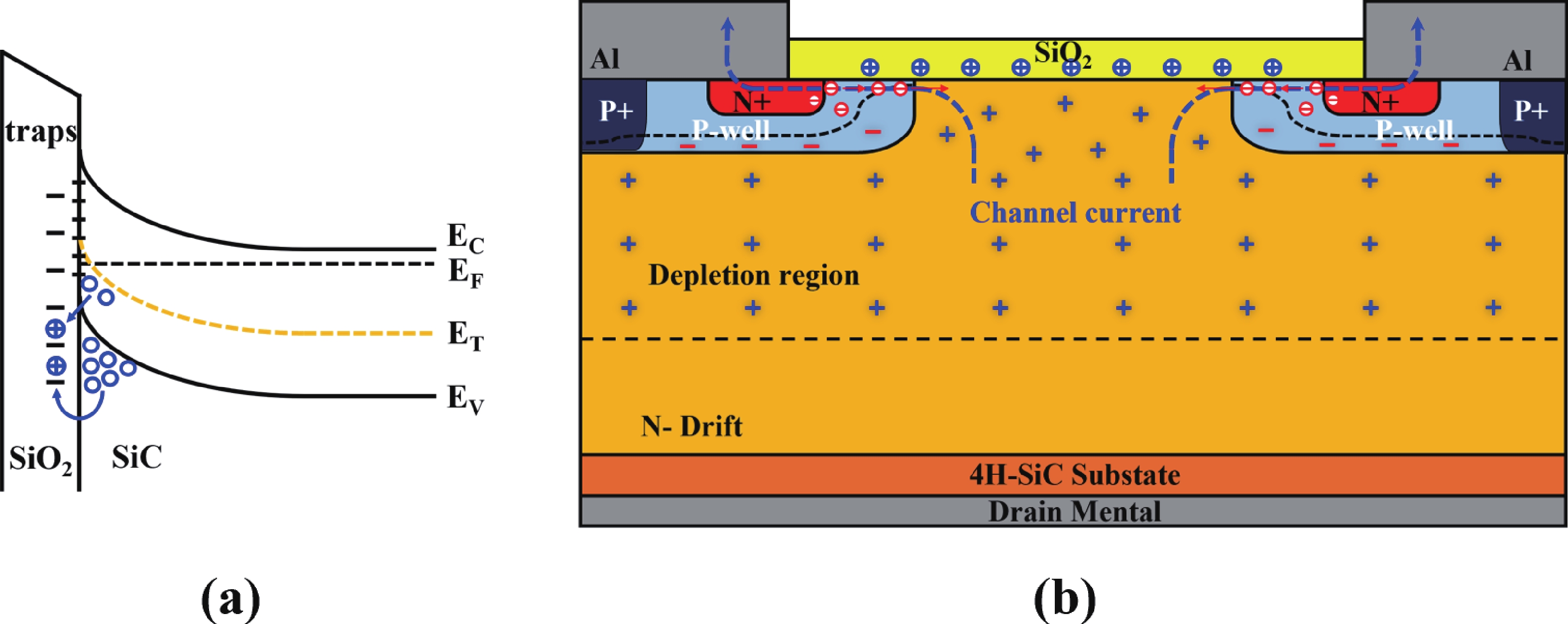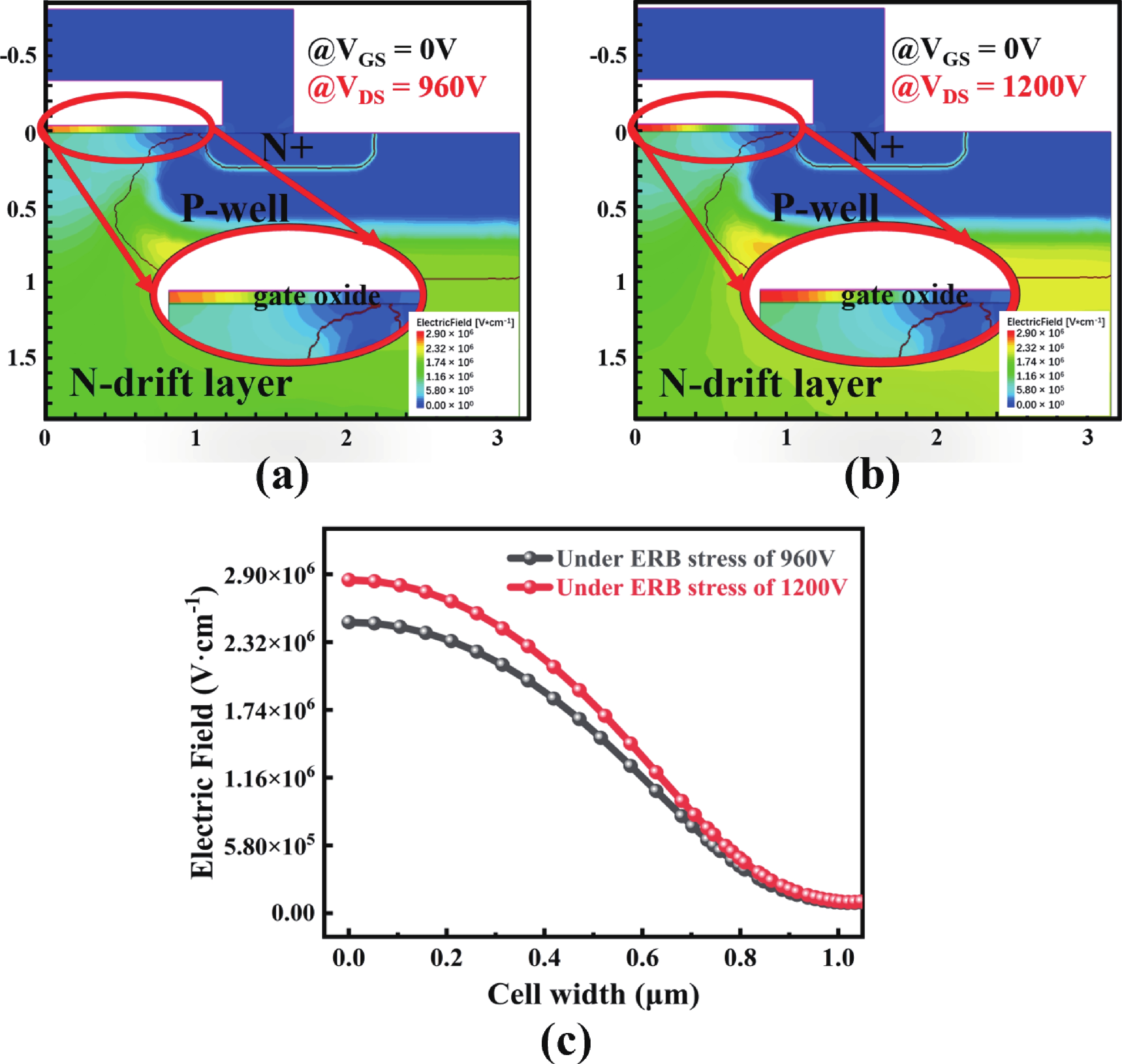 High-temperature reverse bias (HTRB) is one of the most critical reliability for SiC MOSFET, and the termination region is widely regarded as the sensitive area under HTRB stress. Interestingly, through systematically monitoring of the degradation behavior of static electrical parameters under different voltage, this study reveals that the elevated reverse bias (ERB) stress can also induce damage in the gate oxide, which results in the hole trapping and a negative shift of the threshold voltage. Deep level transient spectroscopy (DLTS) measurements were performed and shown that the interface trap density in the gate oxide is promoted after ERB stress. Surprisingly, the reverse leakage current after ERB stress is significantly deteriorated at a gate bias of 0 V, while effectively suppressed by applying a negative gate bias (−5 V), which point to the synergistic effects of channel region on the breakdown voltage. Based on the gate oxide degradations and TCAD simulations, it is elucidated that the trapped positive interface charges in gate oxide cause band bending, leading to the formation of an electron accumulation layer in the channel region at 0 V gate bias and thus resulting in a dominant leakage path. This work reveals the impact and mechanism of the ERB stress induced gate oxide damage on the breakdown voltage and highlights the importance of gate oxide protection, which is of great significance for improving the reliability of SiC MOSFETs in elevated voltage applications.